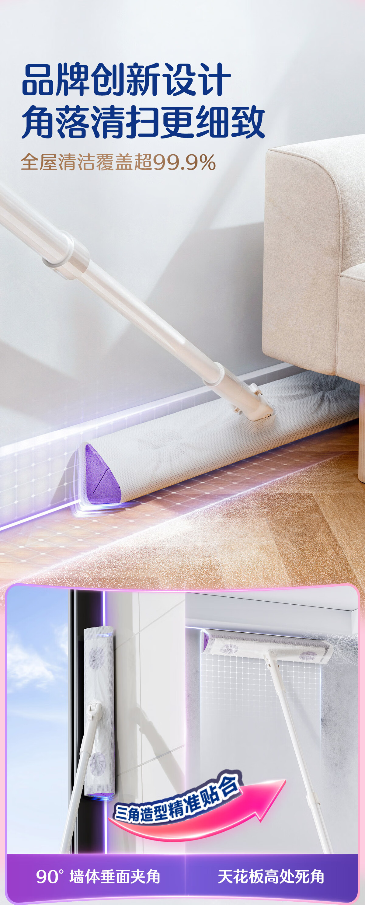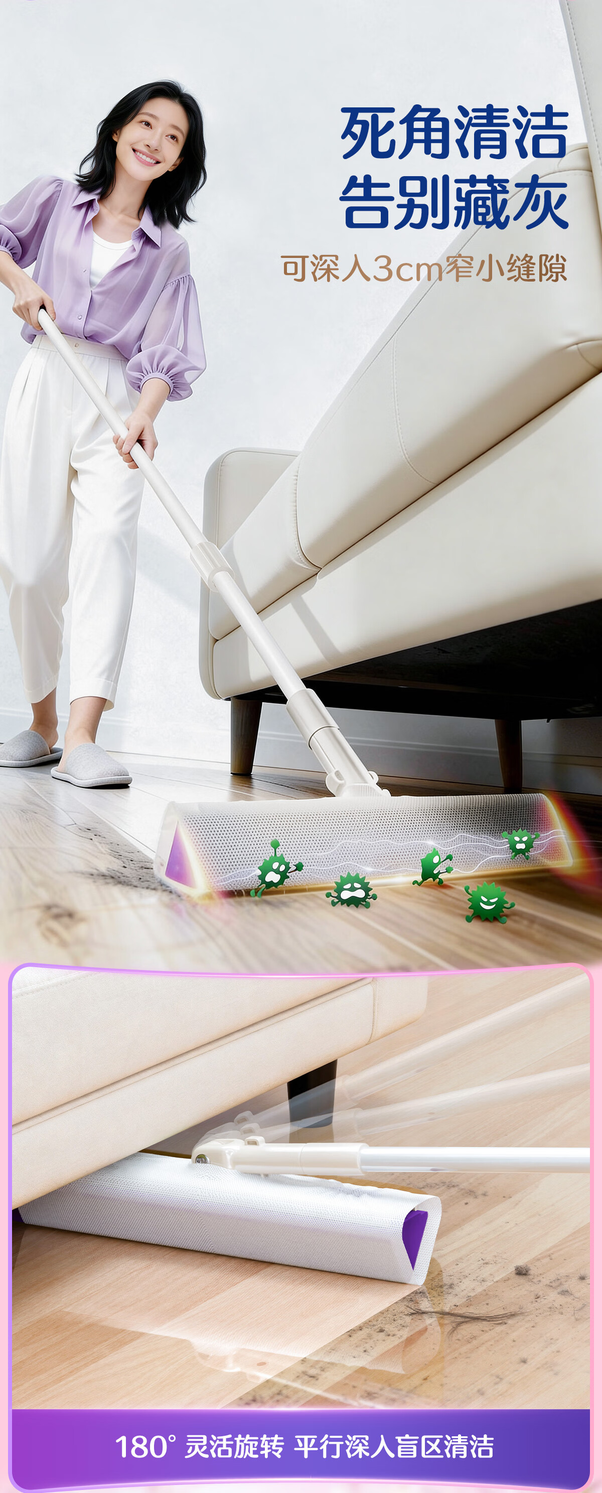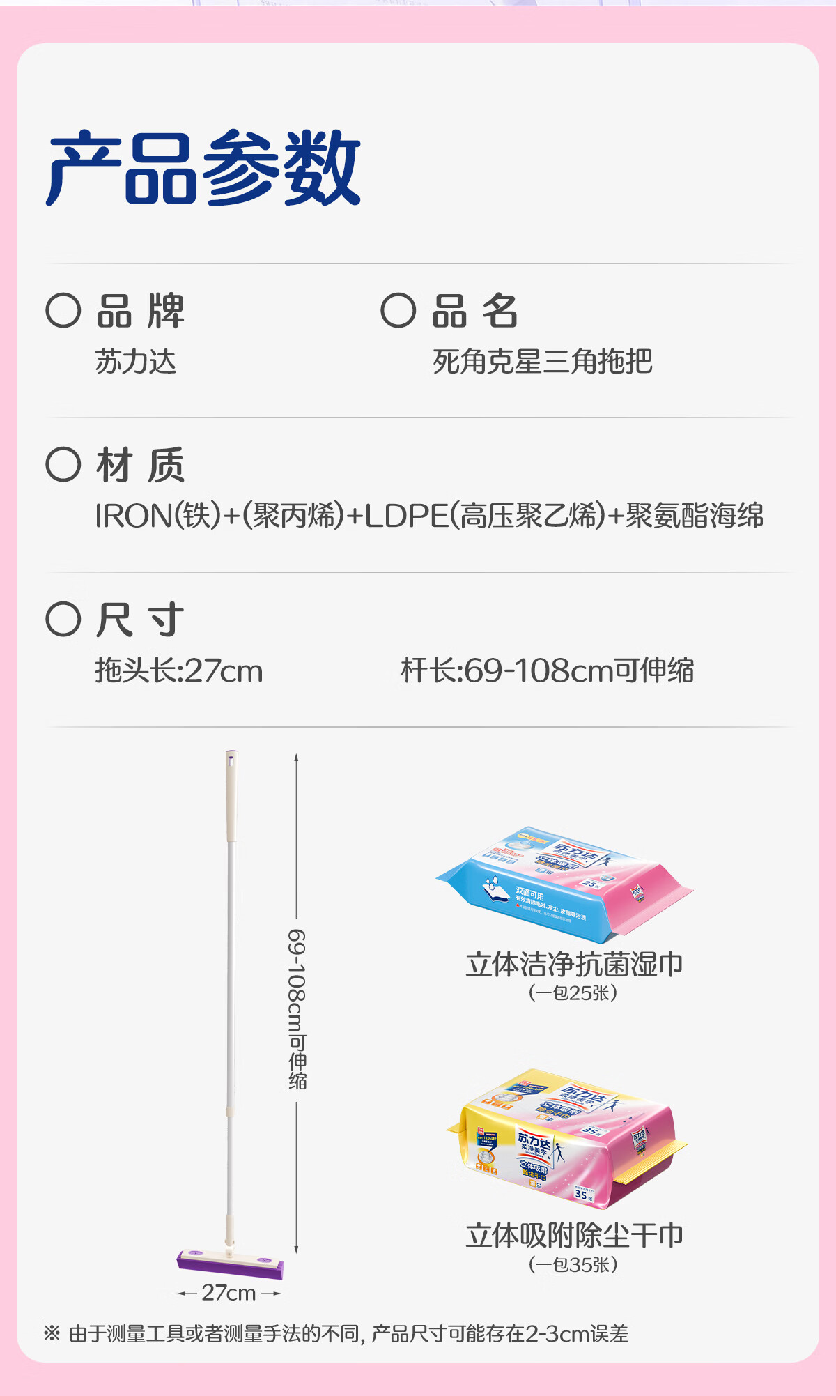 苏力达踢脚线三角区清洁刷可平躺进窄缝拖把懒人免洗静电除尘纸干湿两用 主体拖把+干巾*1包 27cm