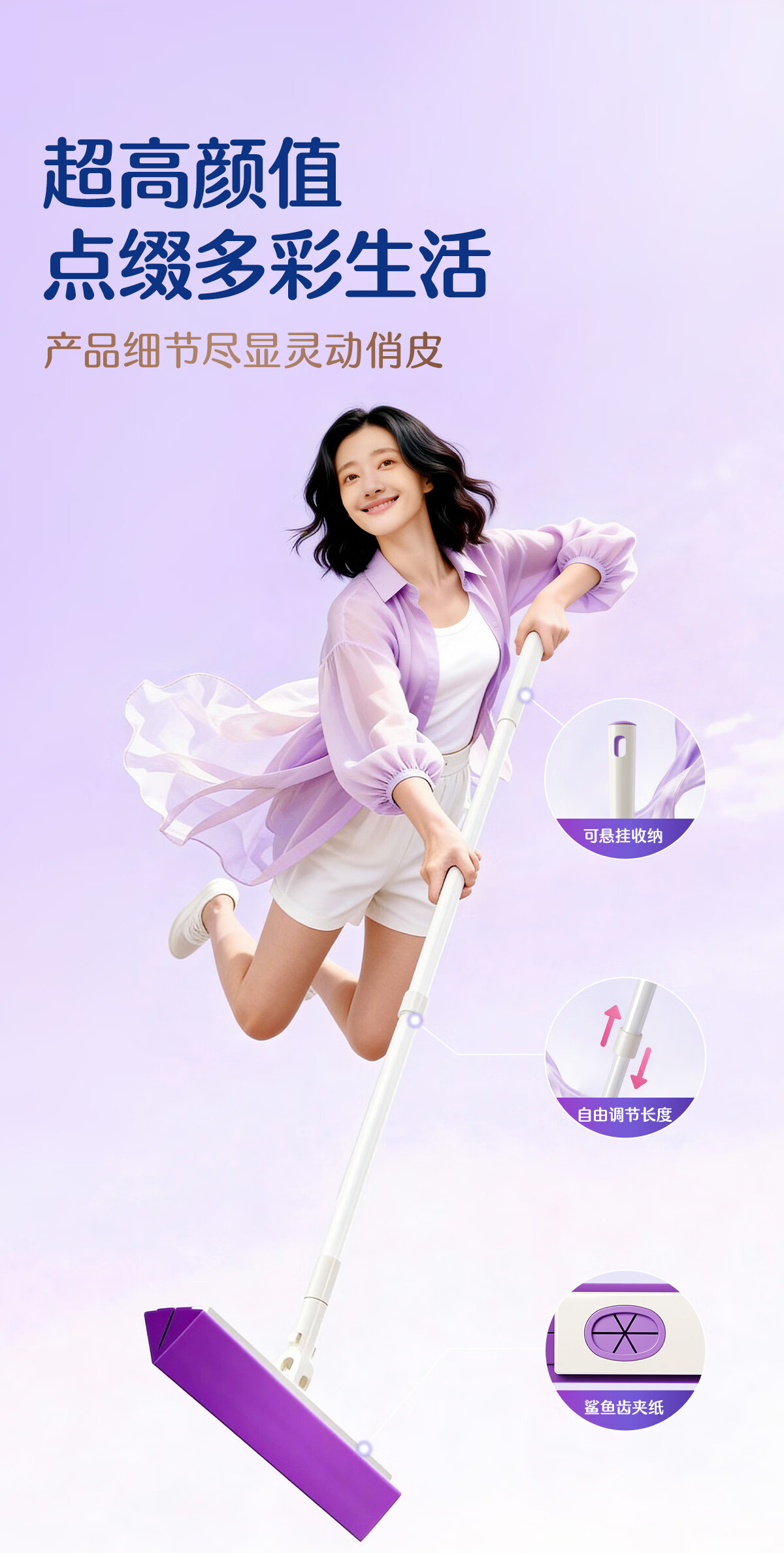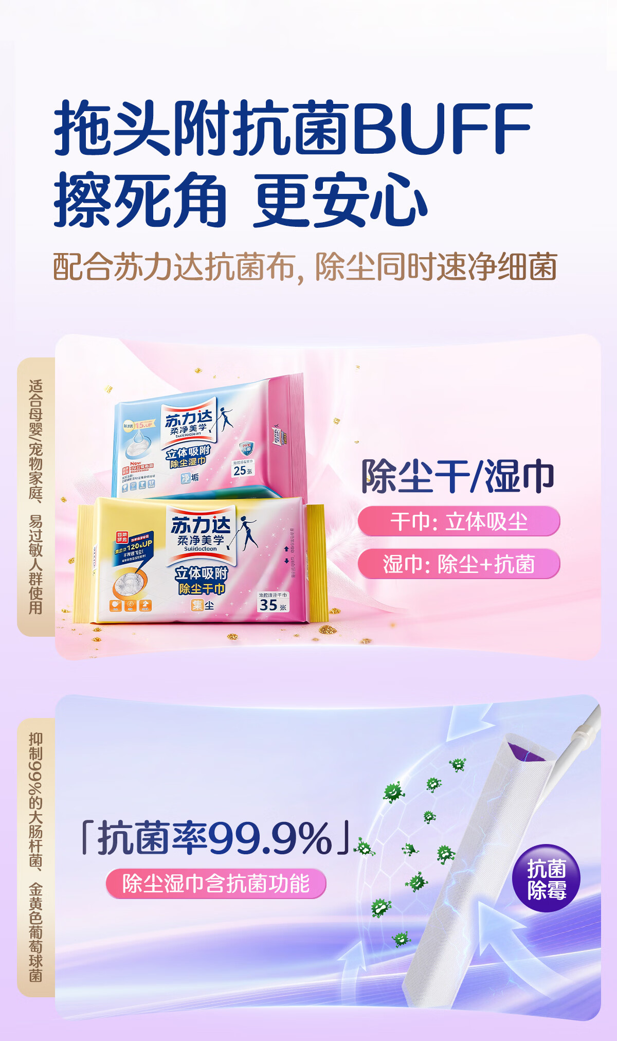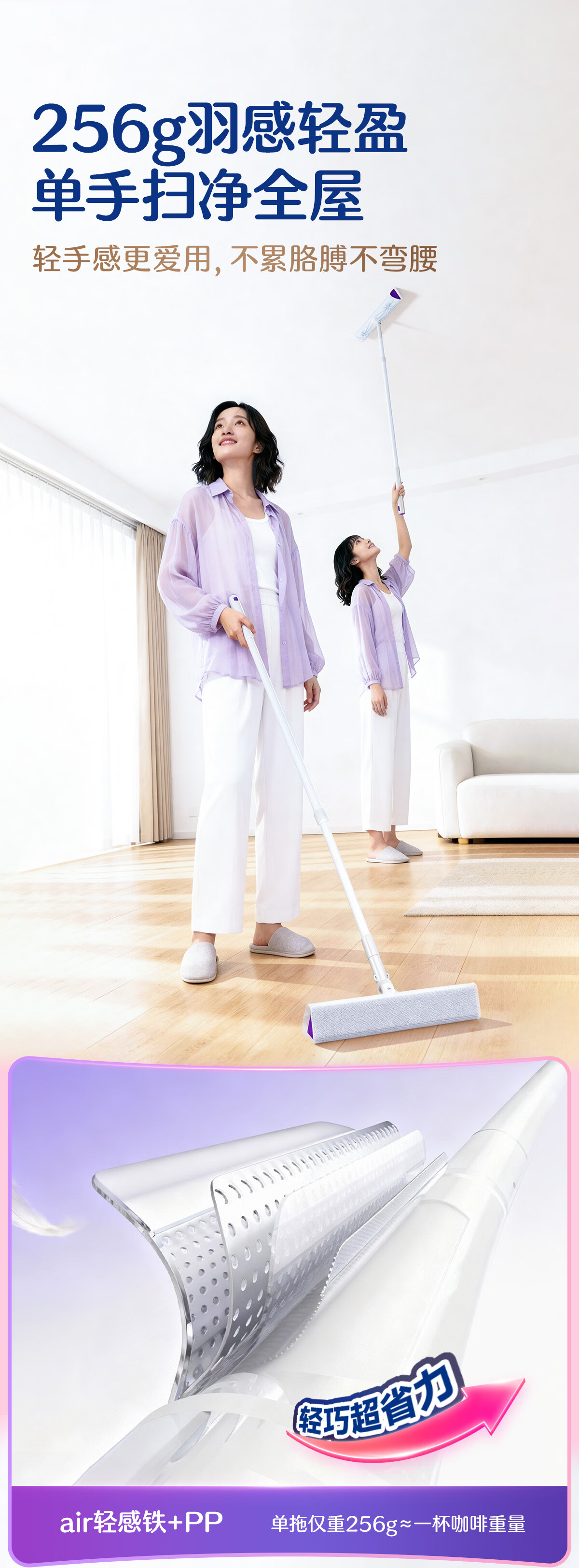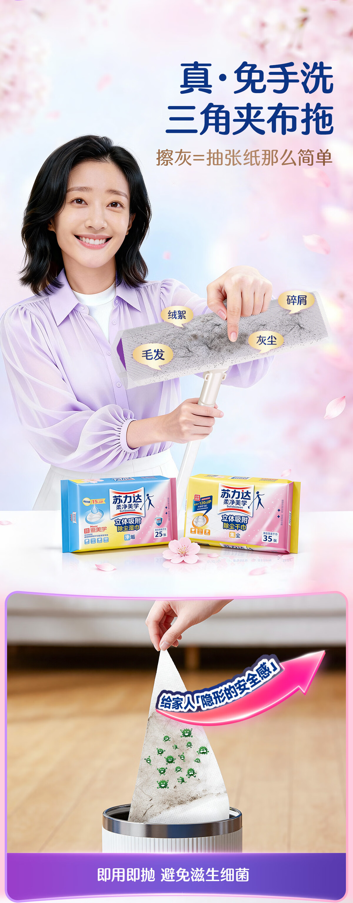 苏力达踢脚线三角区清洁刷可平躺进窄缝拖把懒人免洗静电除尘纸干湿两用 主体拖把+干巾*1包 27cm