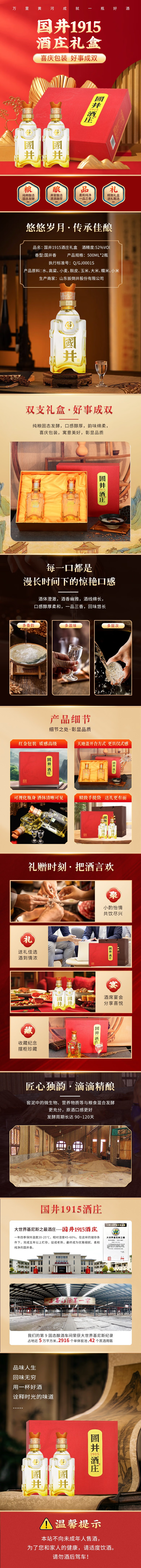 国井白酒 52度国井1915酒庄礼盒 纯粮酿造国井香手提礼盒送礼白酒 52度 500mL 2瓶 搭配手提袋