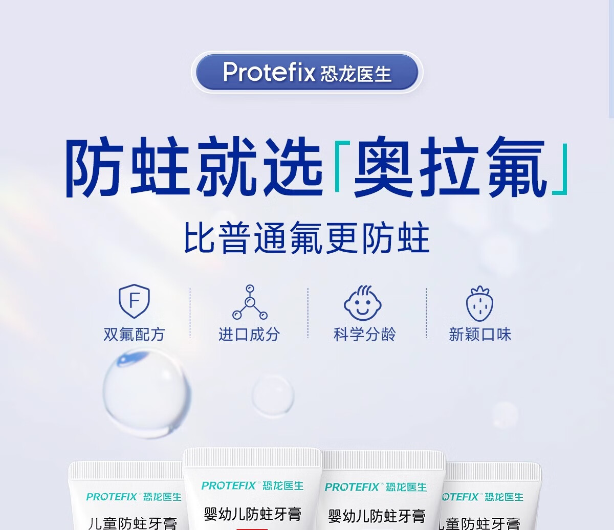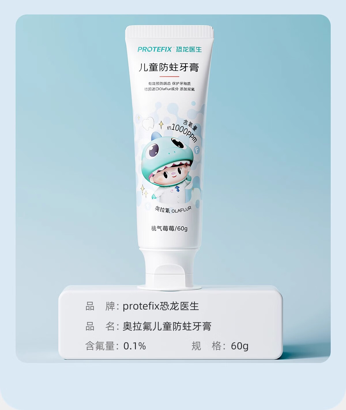 恐龙医生(PROTEFIX)牙膏儿童6-12岁3-6岁奥拉氟防蛀牙儿童牙膏换牙期专用含氟牙膏 【防蛀健齿】桃莓味6-12岁1支