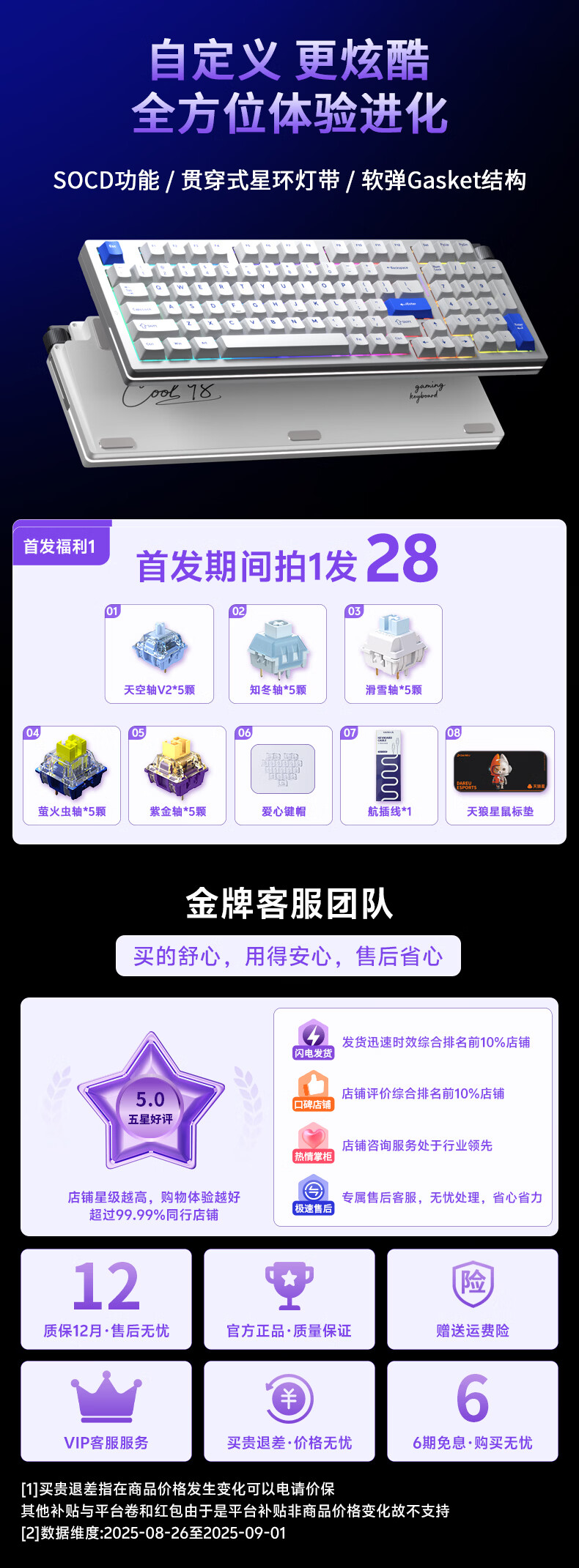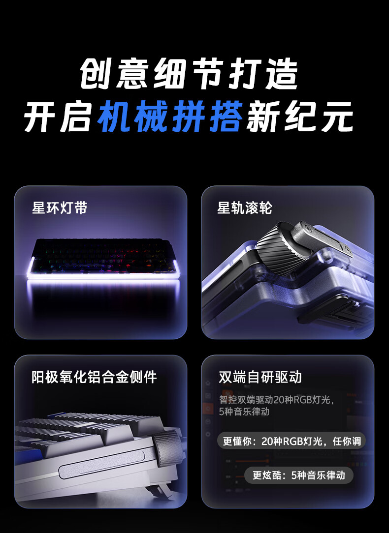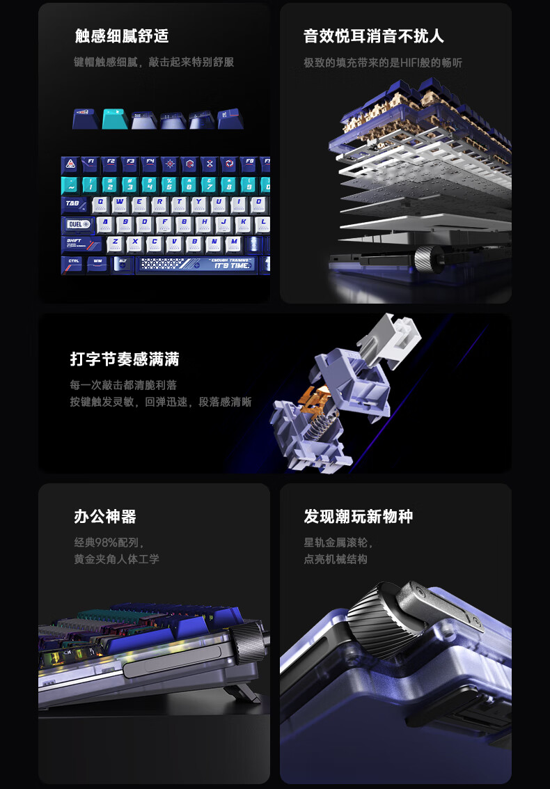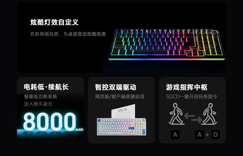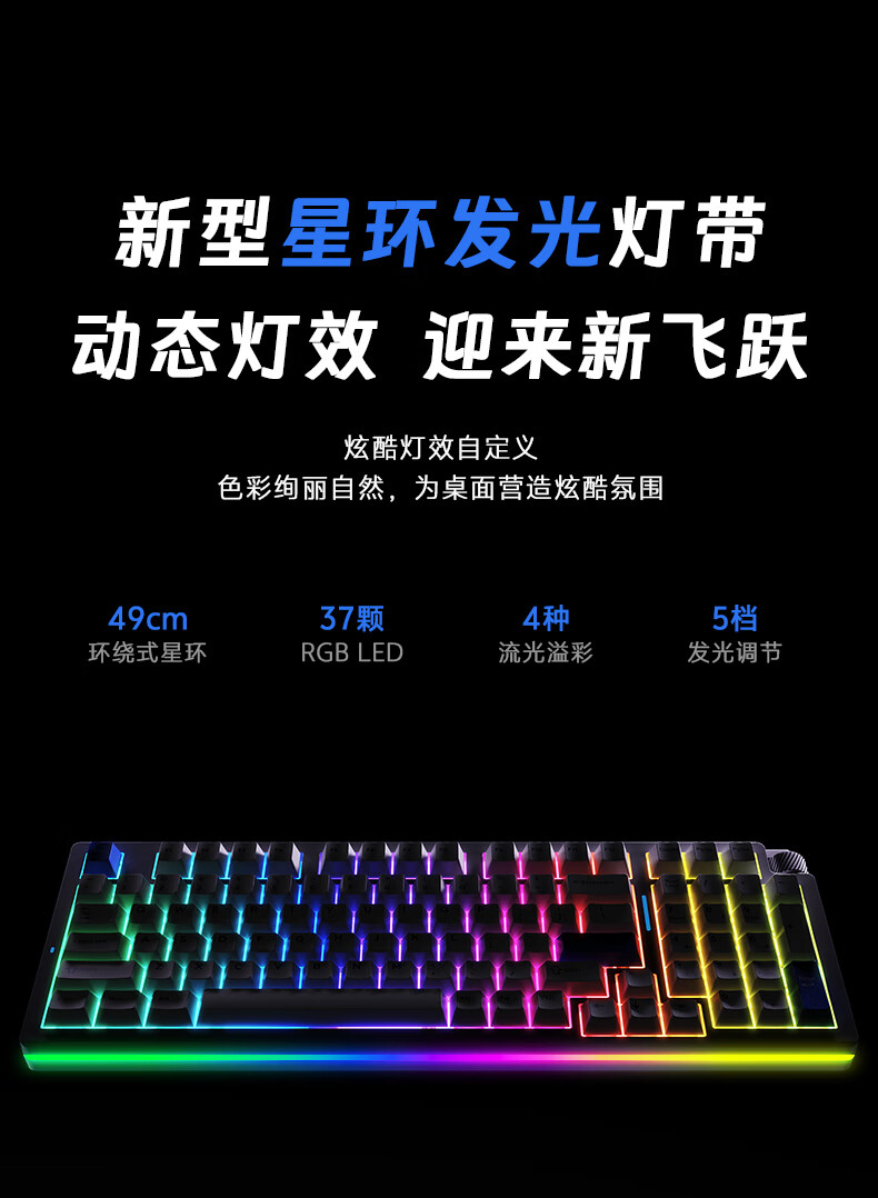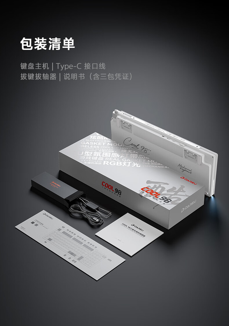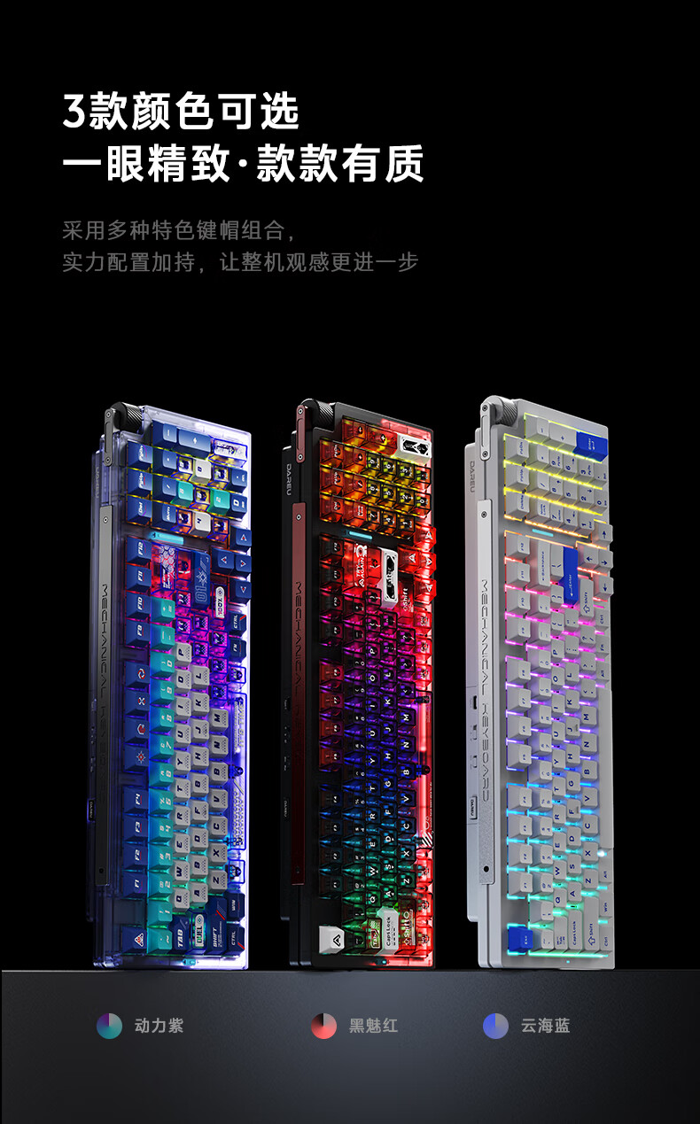 达尔优Cool98 电竞游戏机械键盘客制化三模无线星环灯带透明键盘三角洲无畏契约FPS网页双驱动全键热插拔 动力紫(桃C拿铁轴)