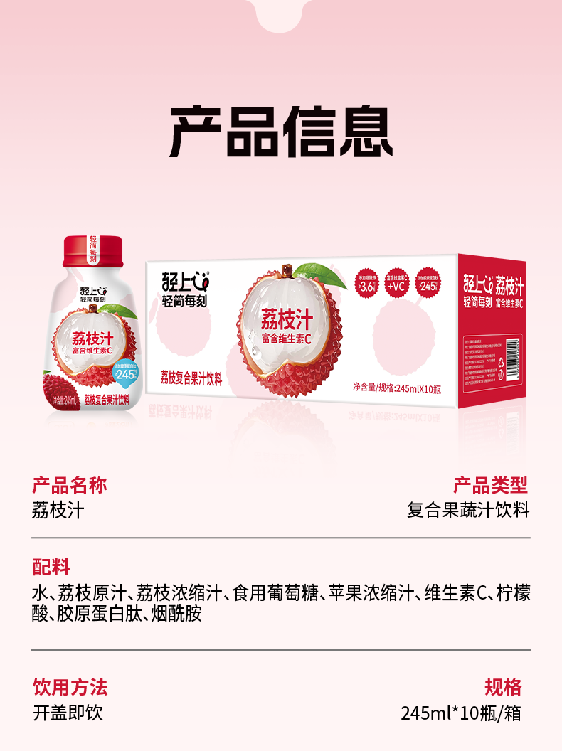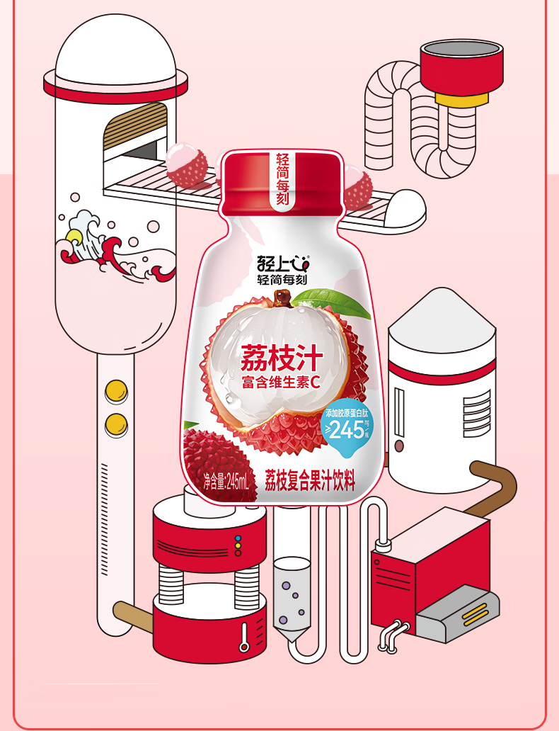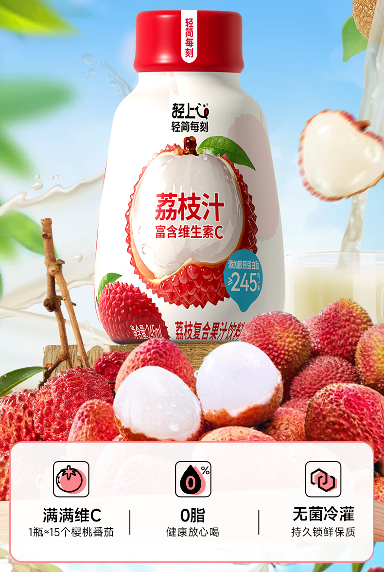 轻上【年货礼盒】轻上荔枝汁果汁饮料妃子笑荔枝富含维生素C果汁饮品 红石榴桑葚汁1L*2瓶