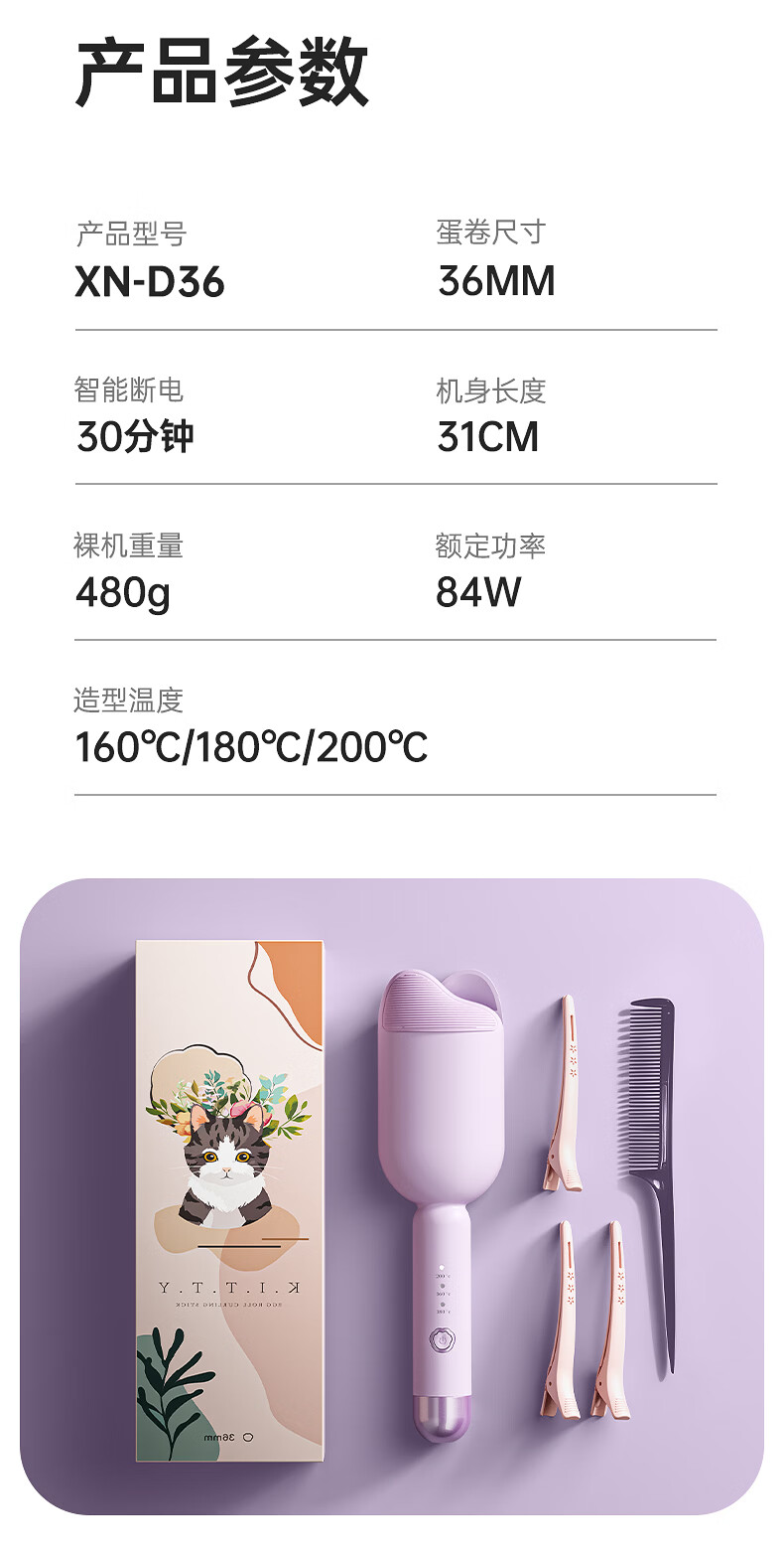 敏煌蛋卷头卷发棒36MM法式大卷负离子护发蛋卷棒蛋卷卷发棒情人节礼物 【标准款】陶瓷釉涂层/三档温控
