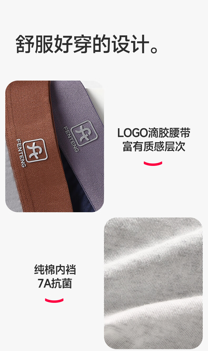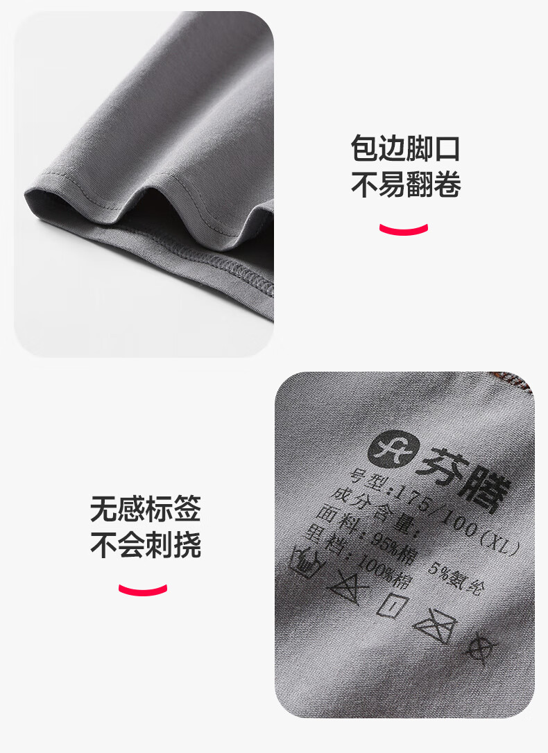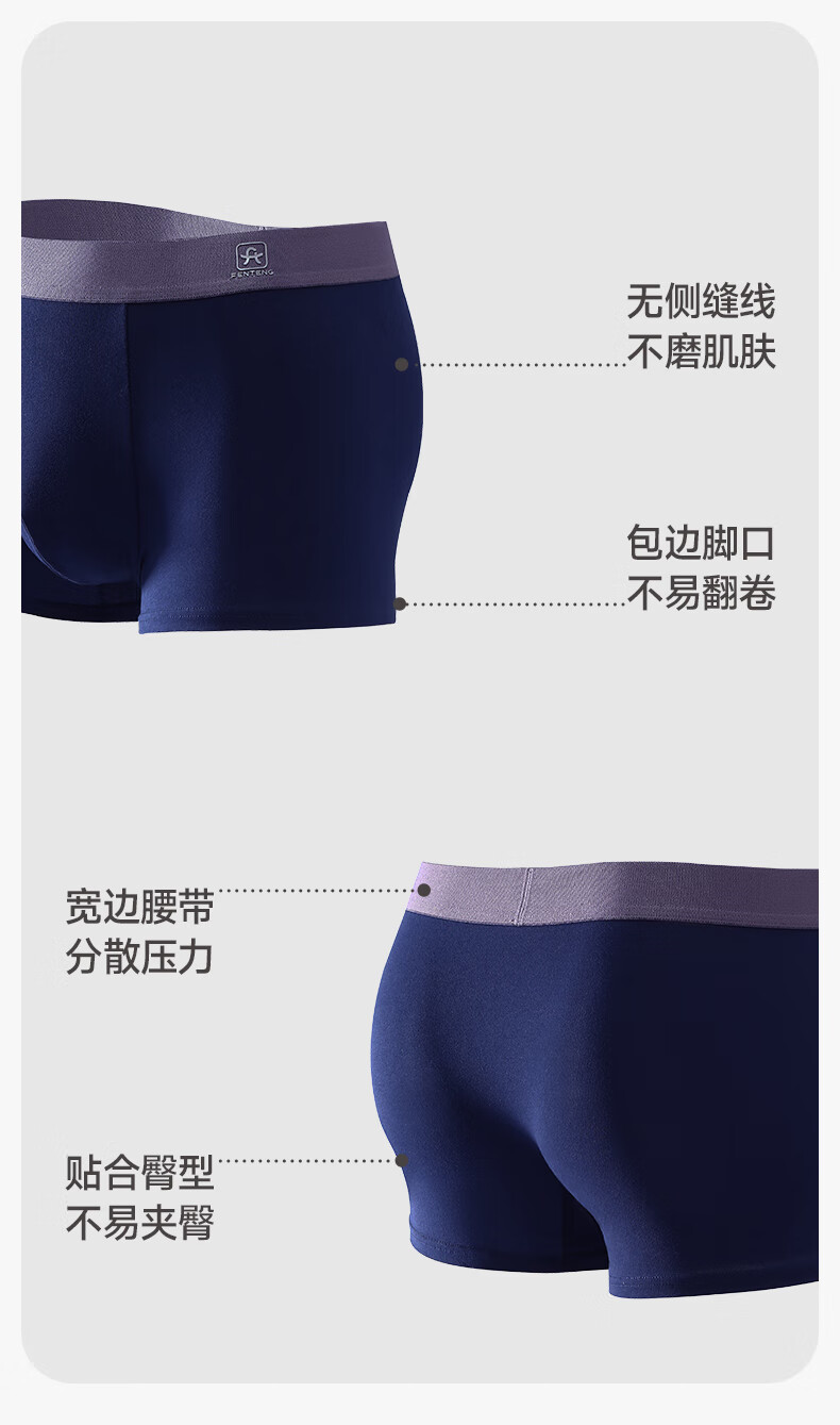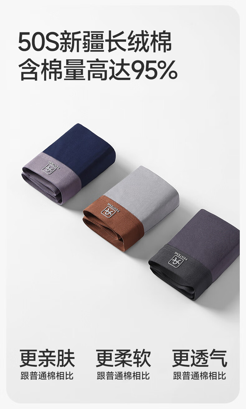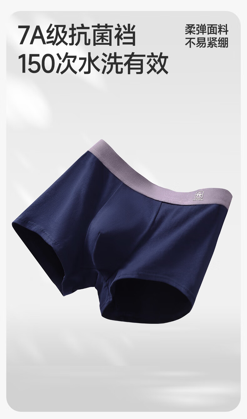 芬腾内裤男士透气抑菌抗菌裆四季平角裤运动大码新款青年四角短裤头 组合三 【棉款】 3条 4XL 建议:196-215斤