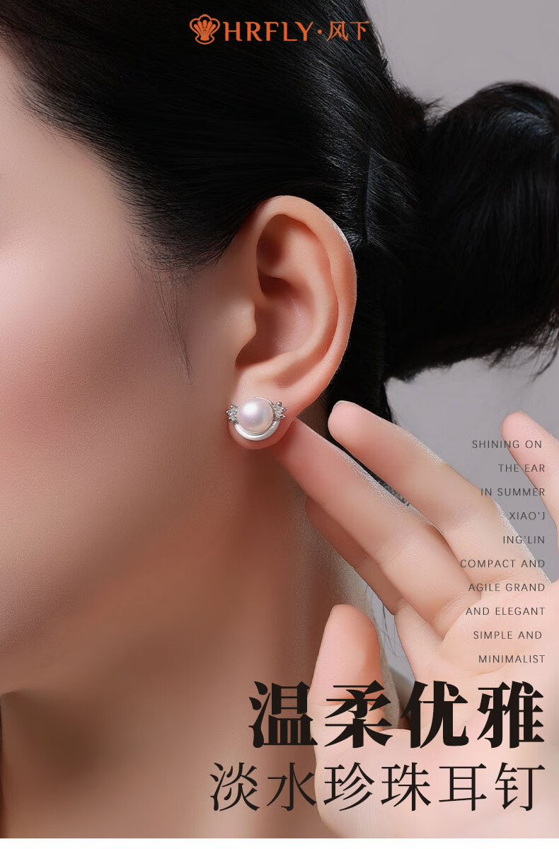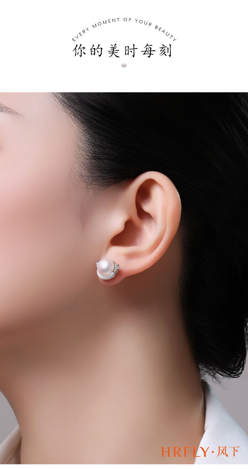风下小蜜蜂强光淡水珍珠耳钉 8-9mm耳饰珠宝 时尚百搭 送礼女友老婆 8-9mm 小蜜蜂耳钉