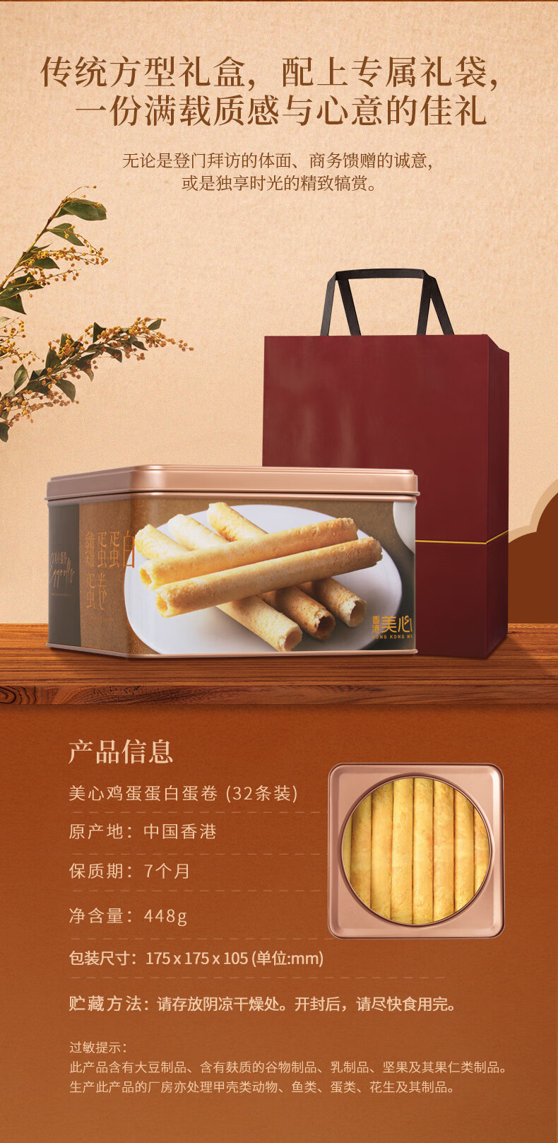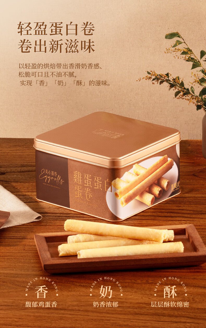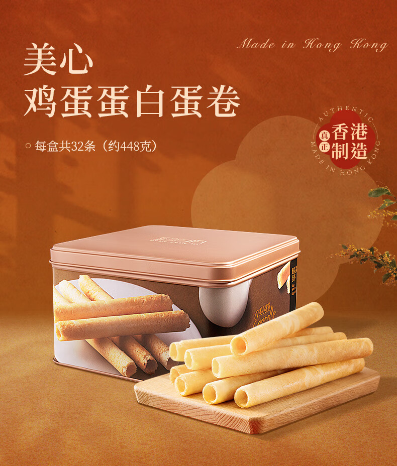 美心(Meixin)鸡蛋蛋白卷448g(32条装)饼干糕点年货团购送礼 效期至3月3日 美心蛋白蛋卷 (32条装)448g