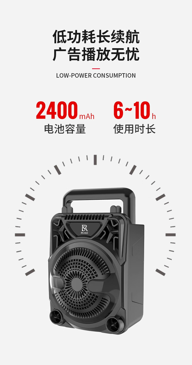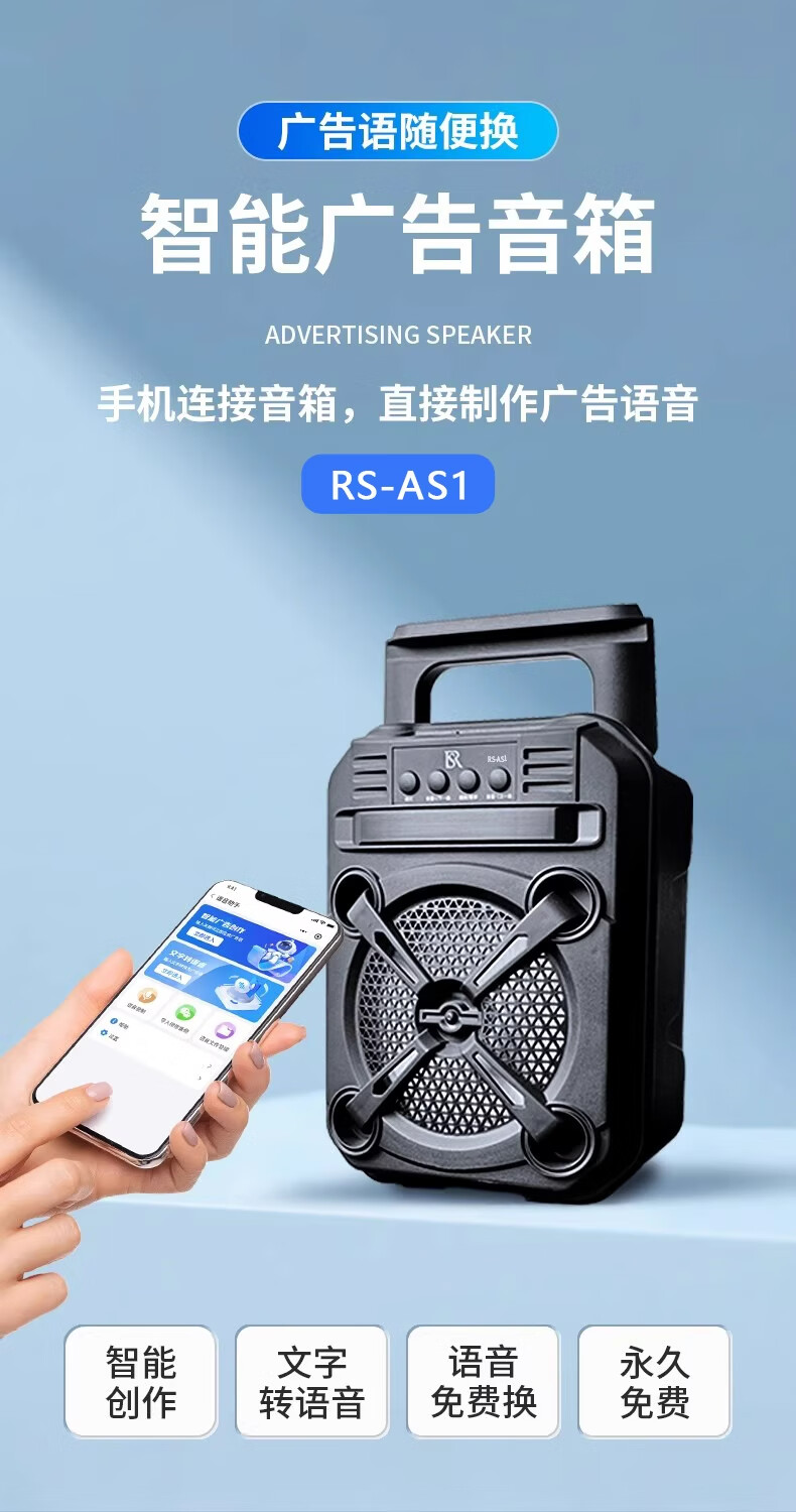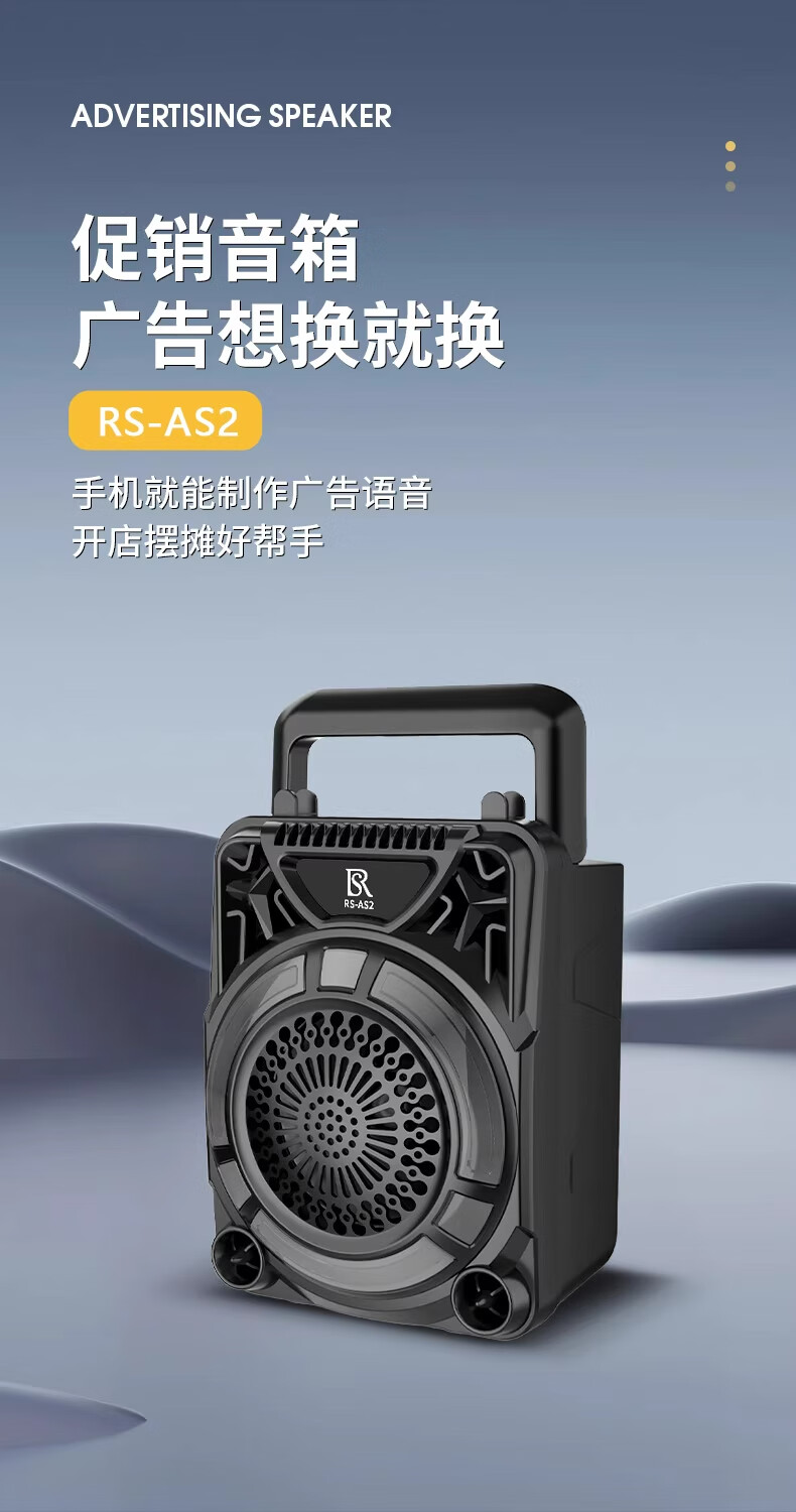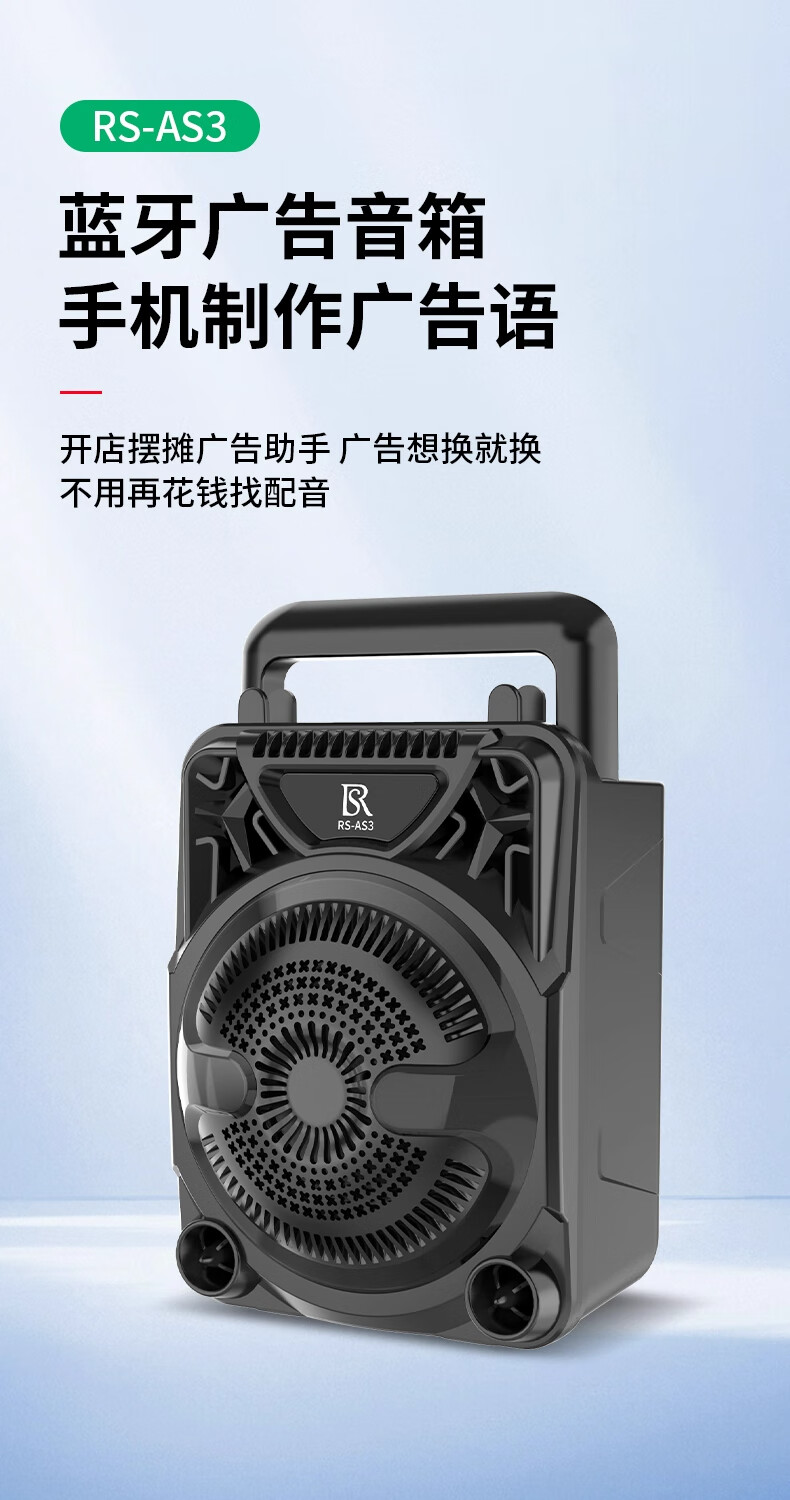 瑞声悦听广告宣传叫卖音响摆摊专用喇叭文字转语音可录音循环播放器一体机 小号文字转语音AS3广告音响一体机 2400毫安 续航6小时