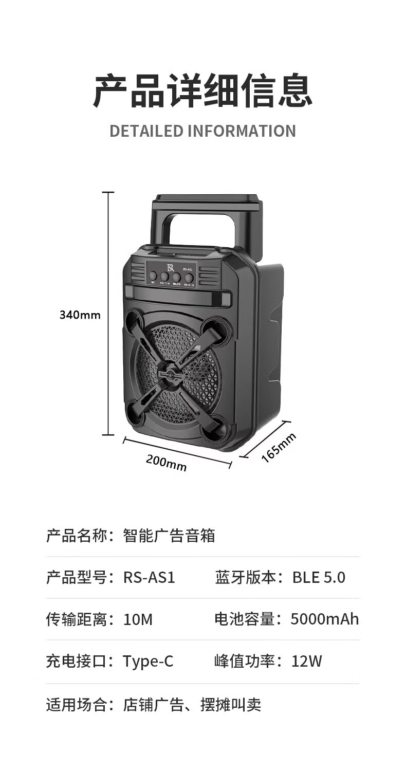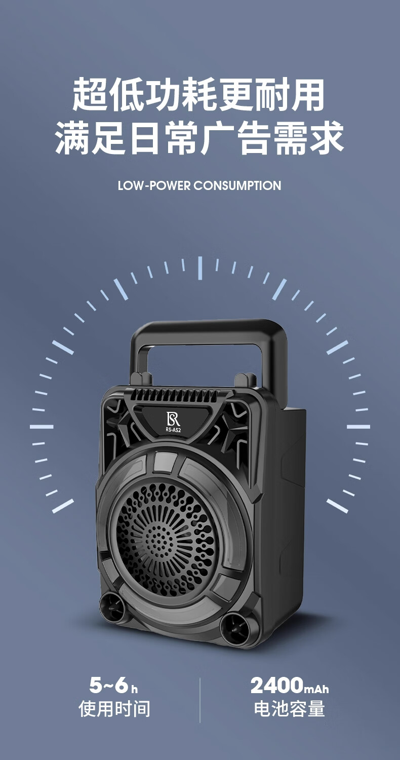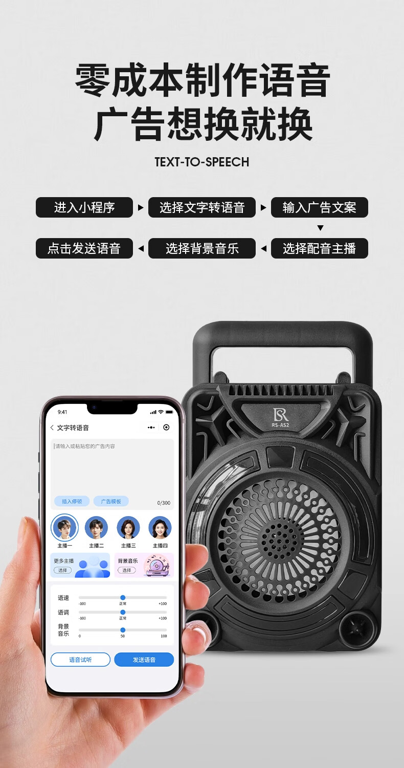 瑞声悦听广告宣传叫卖音响摆摊专用喇叭文字转语音可录音循环播放器一体机 小号文字转语音AS3广告音响一体机 2400毫安 续航6小时