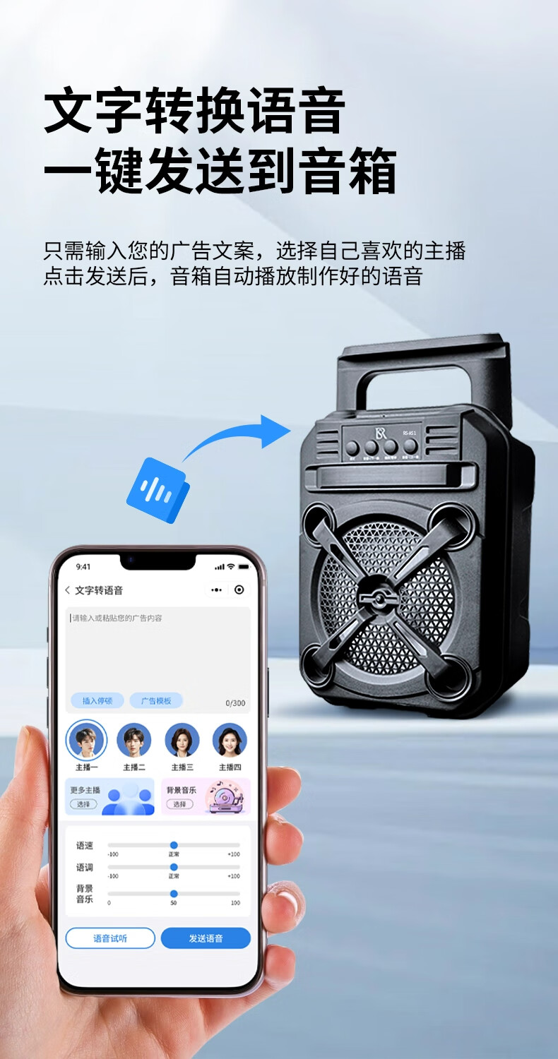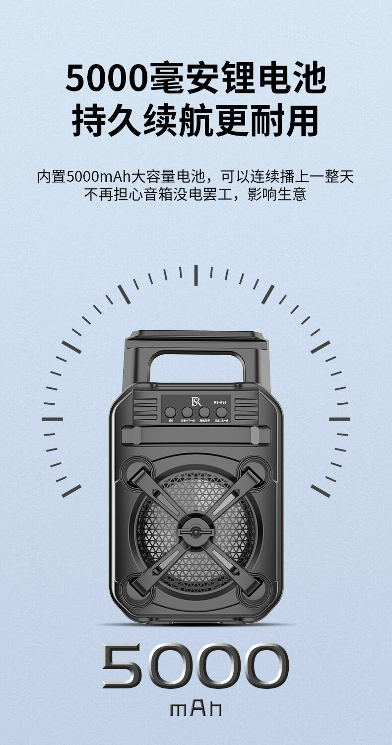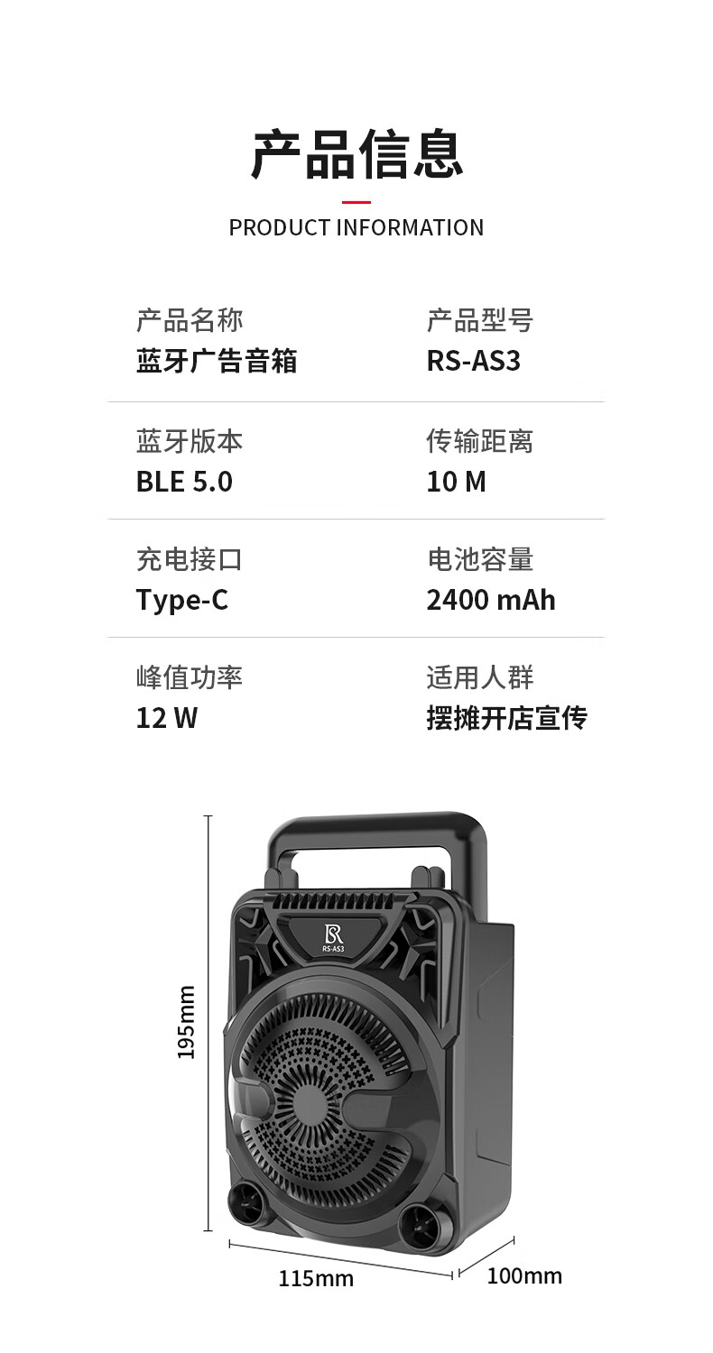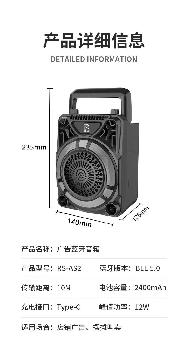 瑞声悦听广告宣传叫卖音响摆摊专用喇叭文字转语音可录音循环播放器一体机 小号文字转语音AS3广告音响一体机 2400毫安 续航6小时
