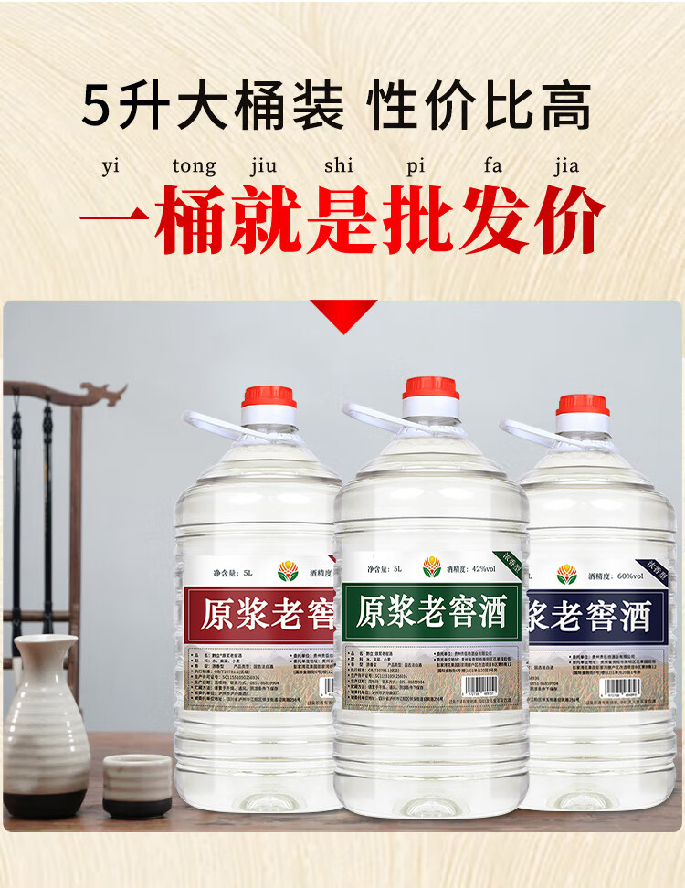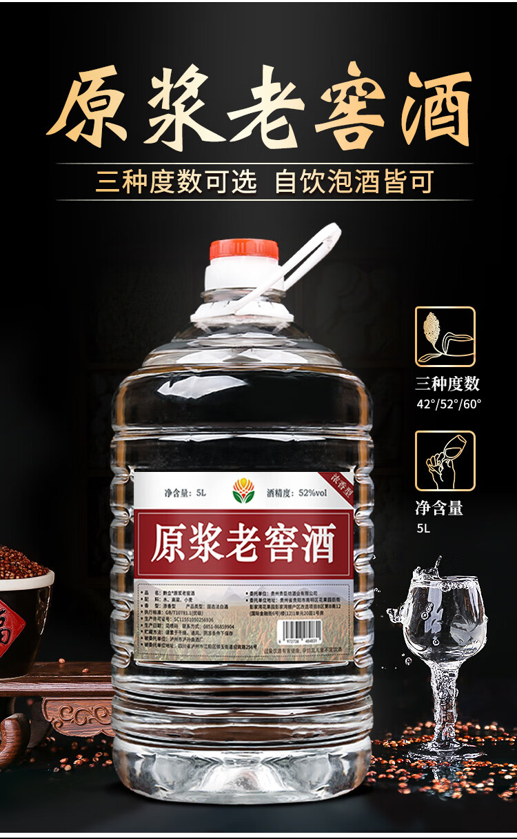 黔立浓香型十斤大桶装白酒纯粮食酒高粱酒泸州高度白酒散装泡酒用酒水 60度 5L 1桶 臻品窖酒自饮/珍藏