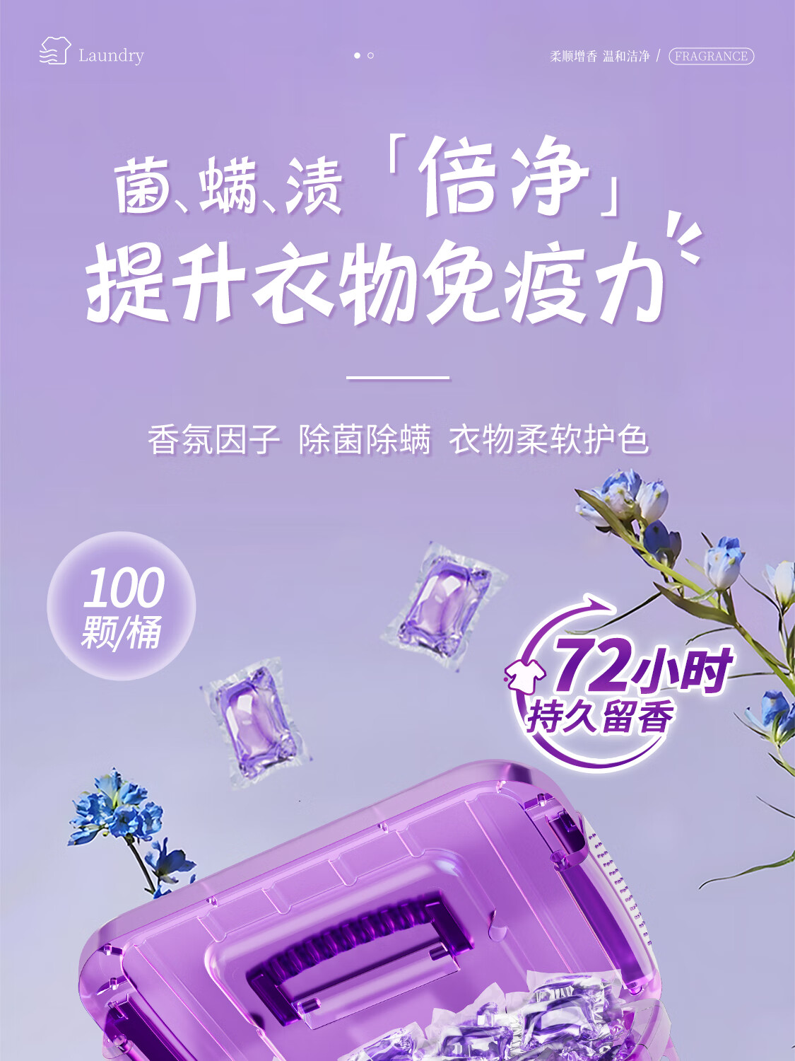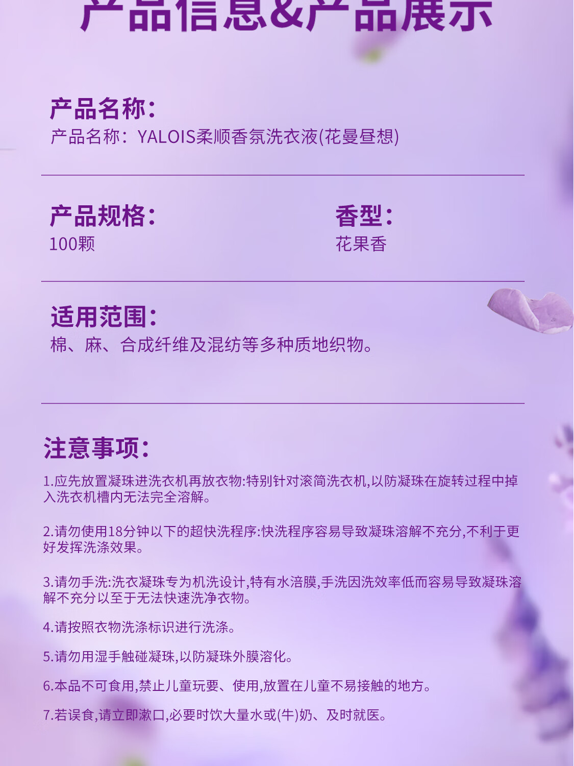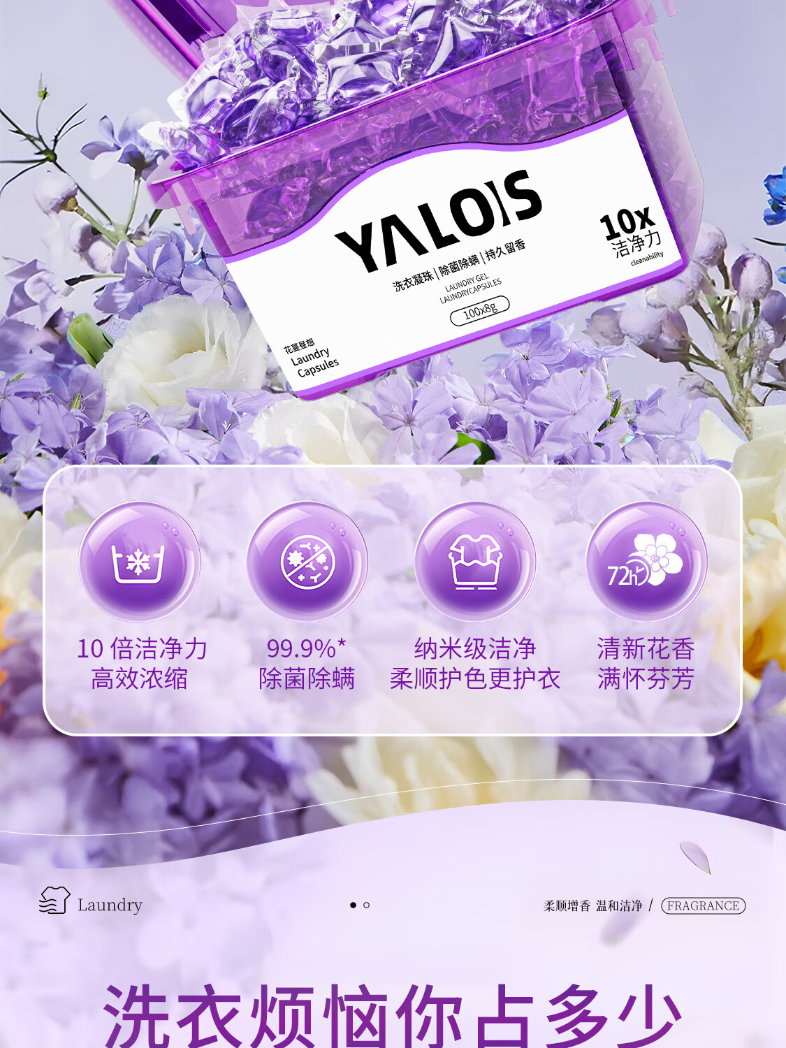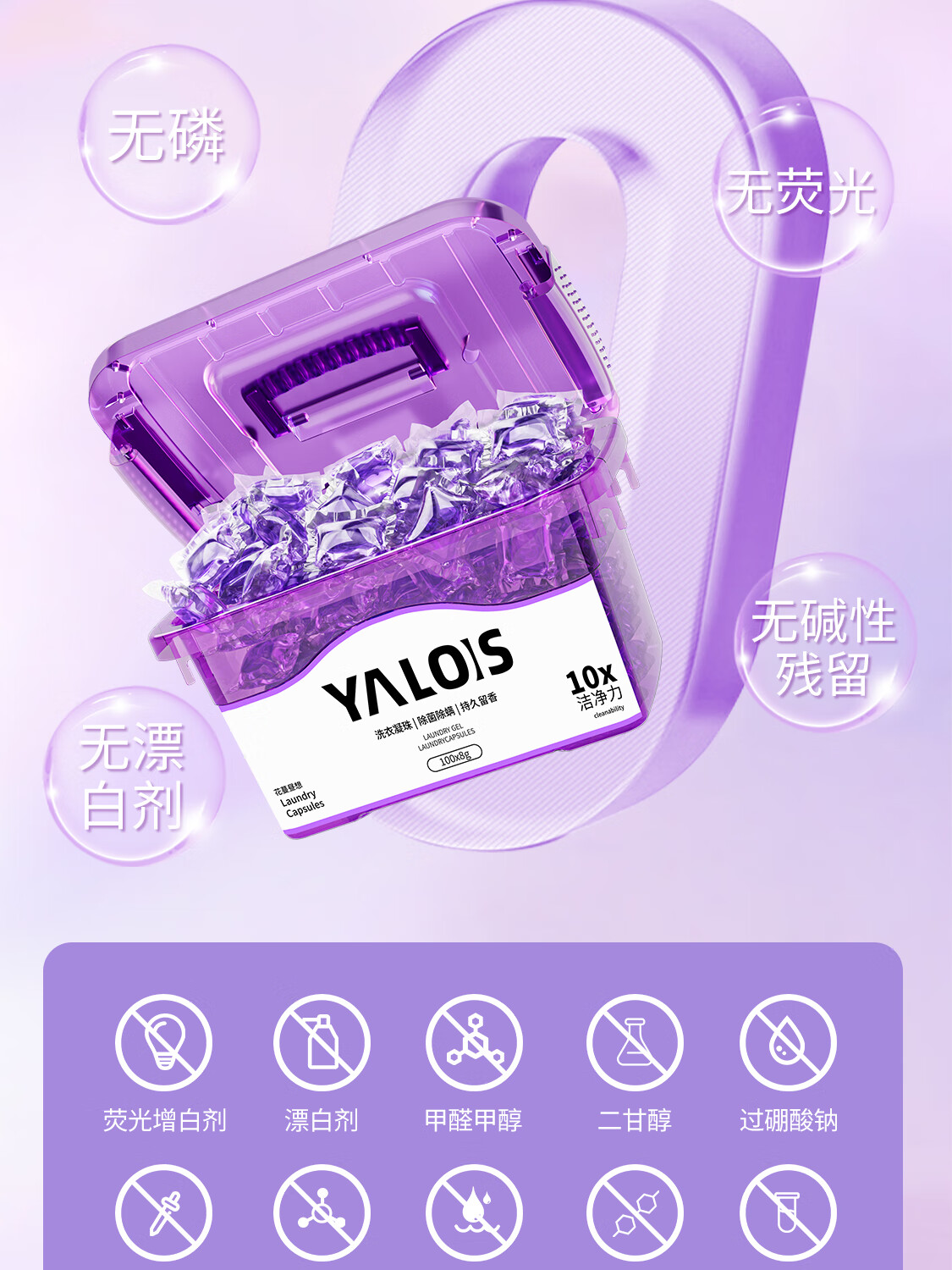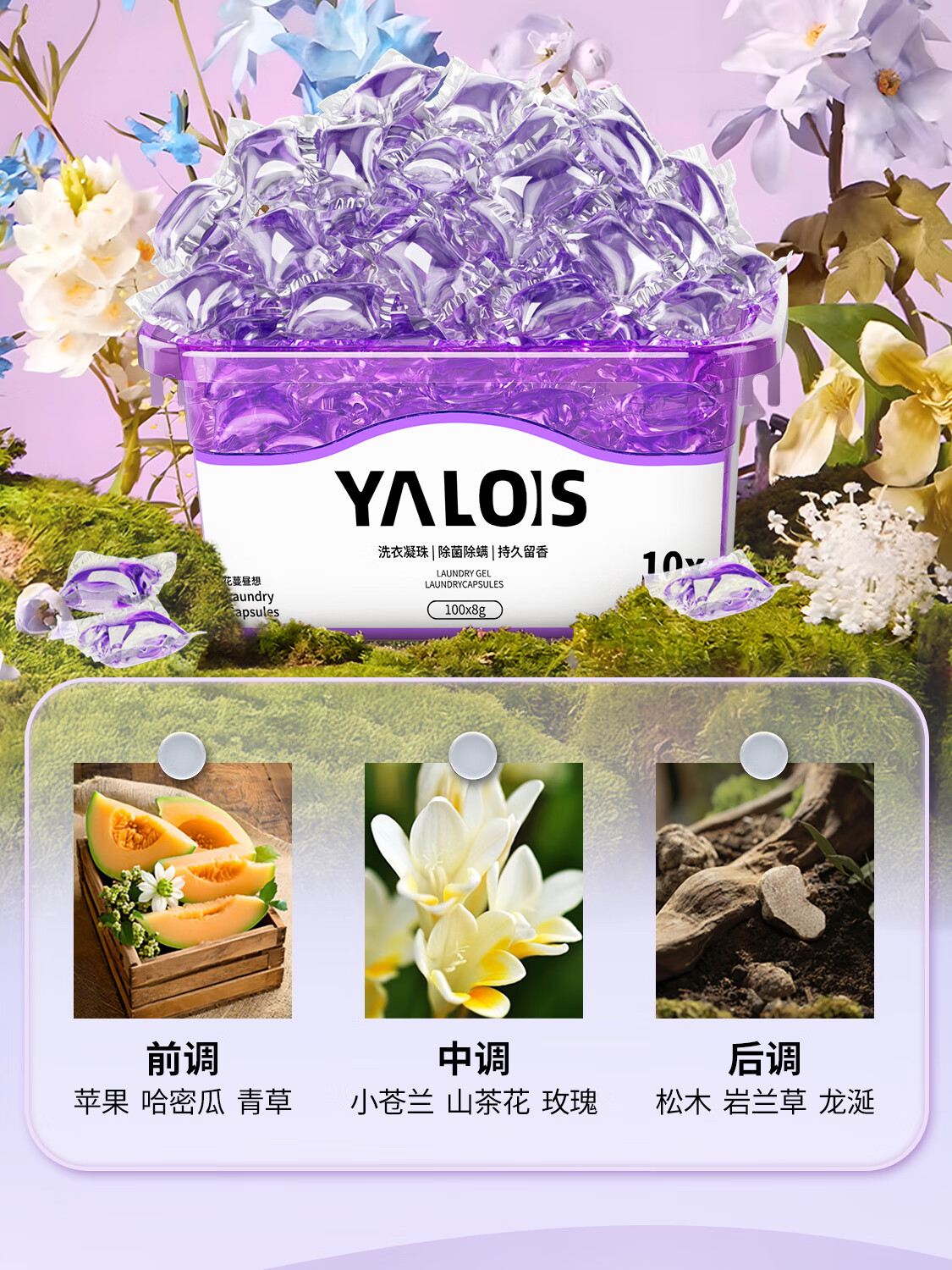 YALOIS洗衣凝珠留香珠浓缩单腔三合一洗衣物持久留香味除菌除螨100颗