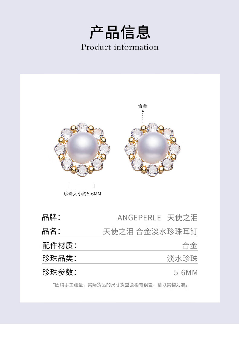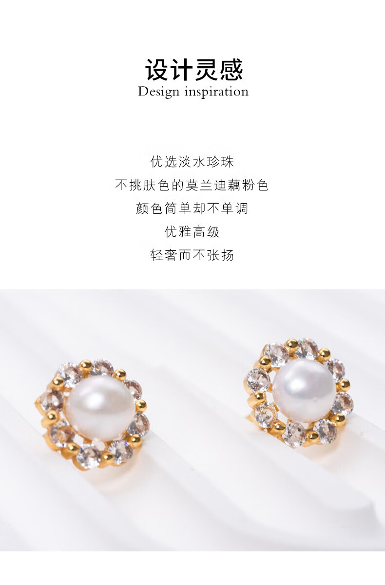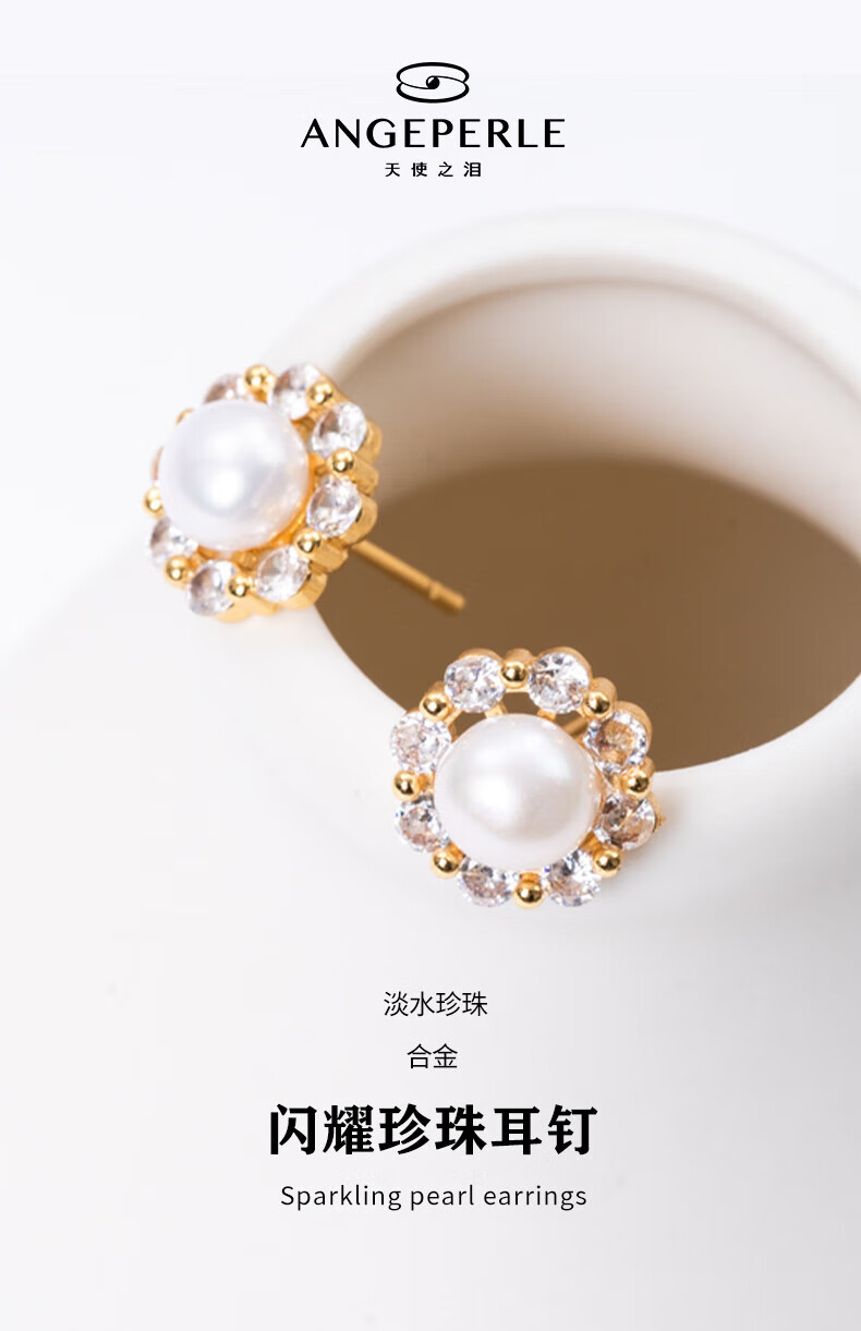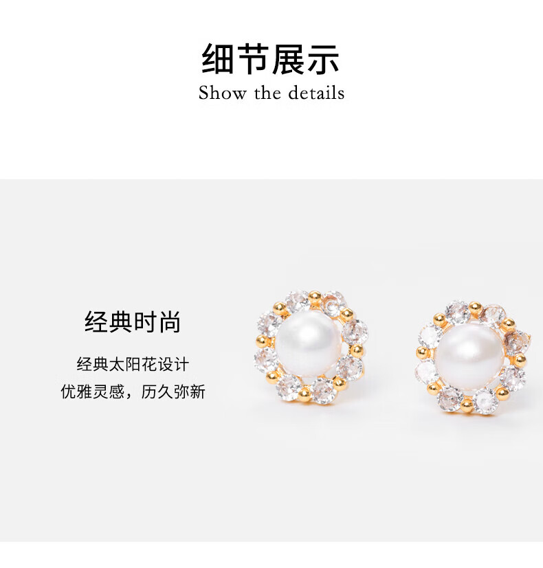 天使之泪淡水珍珠耳钉耳饰闪耀锆石镶嵌小香风设计款新年情人节礼物送女友 福利款-太阳花【馒头圆】5-6mm