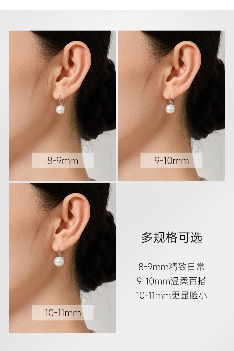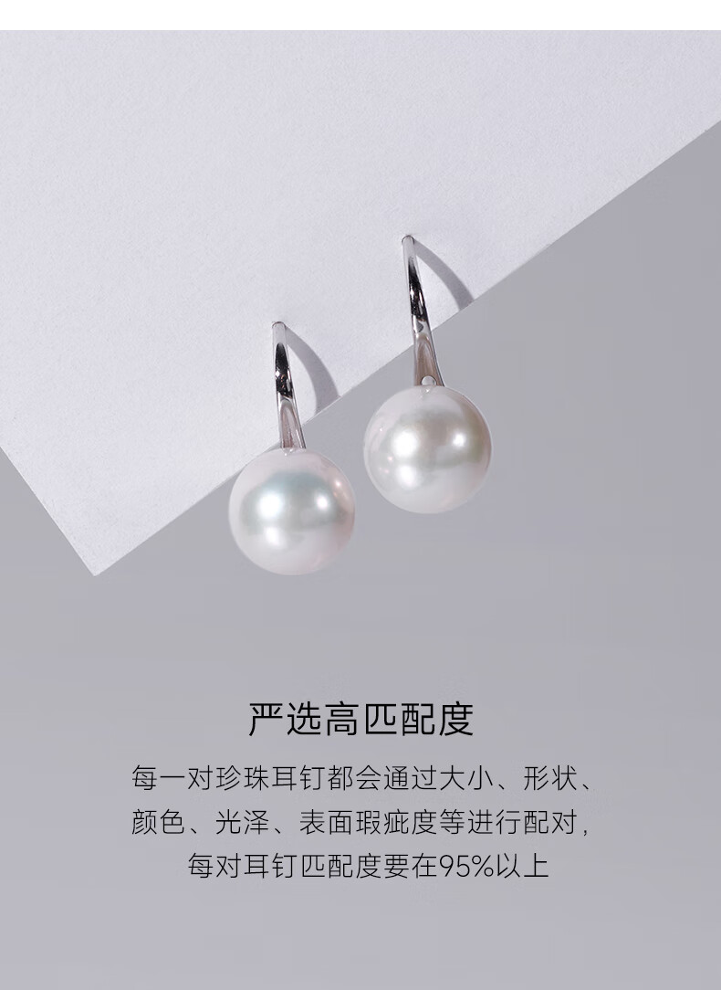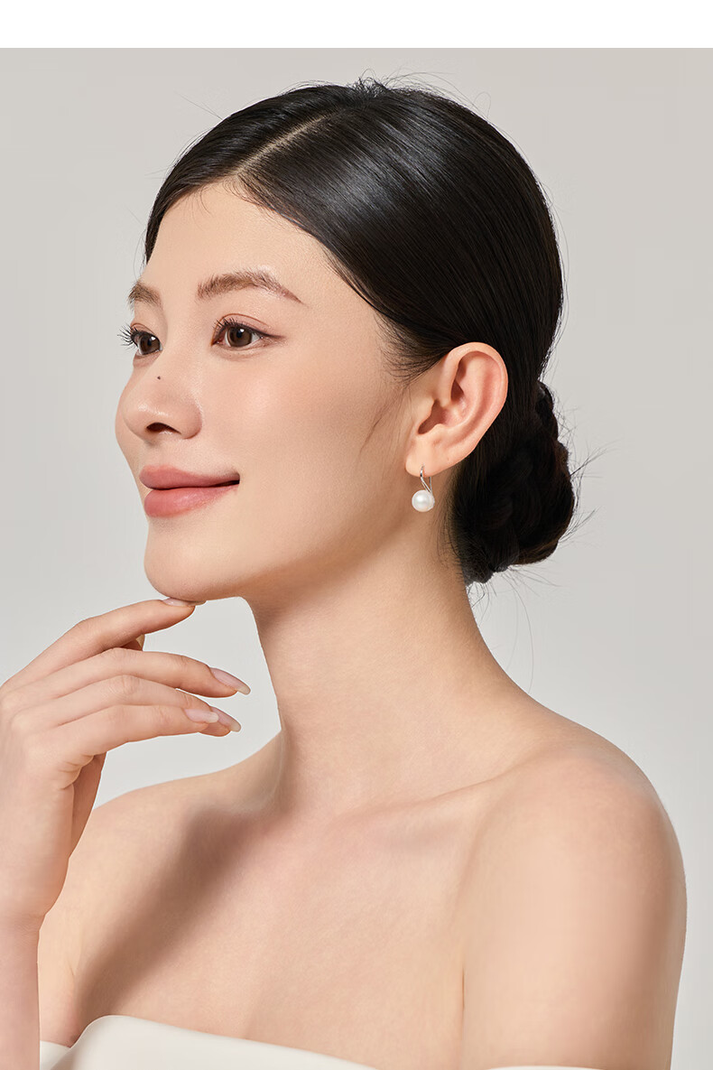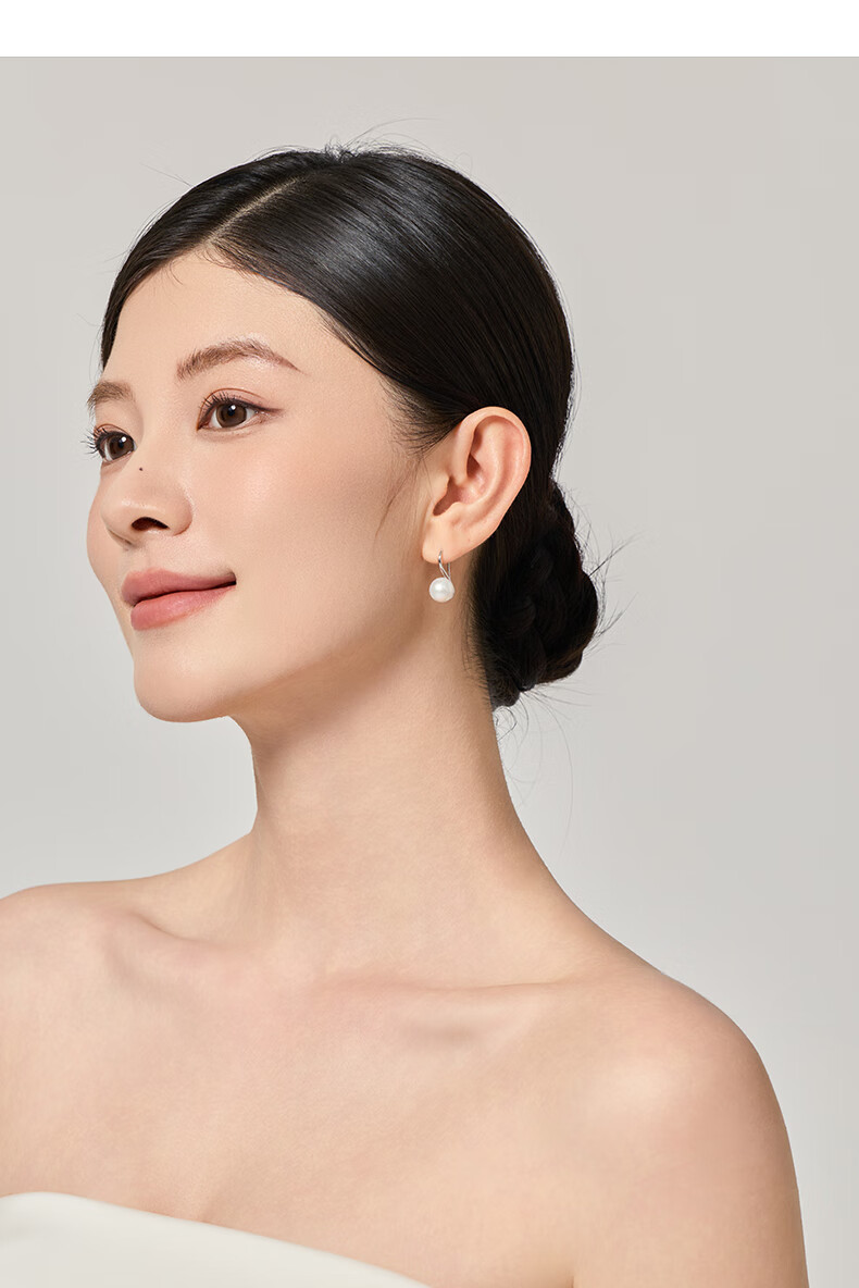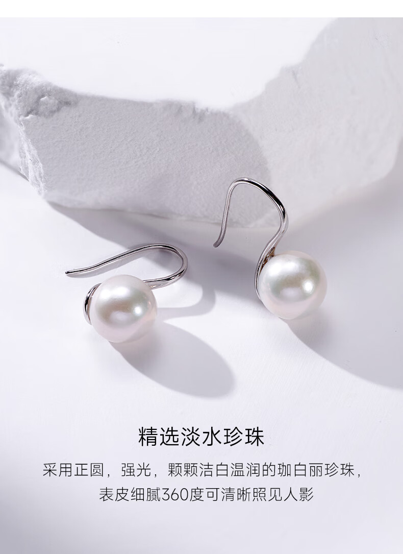 有幸珍珠耳钩 淡水珍珠耳环6-7mm简约设计款气质耳钉送女友生日礼物 6-7mm 白色米形珍珠耳钩