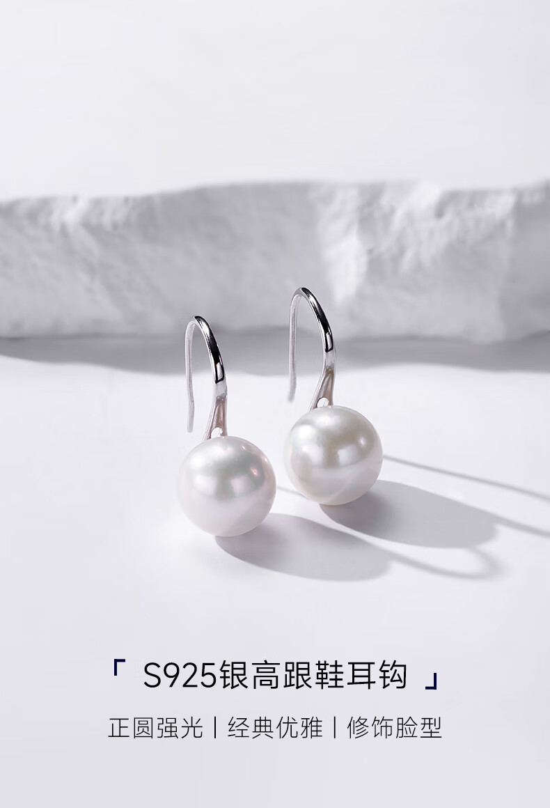 有幸珍珠耳钩 淡水珍珠高跟鞋耳钩简约款百搭轻奢复古高级感珍珠耳环 合金 淡水珍珠耳钩7-8mm 馒头形/强光