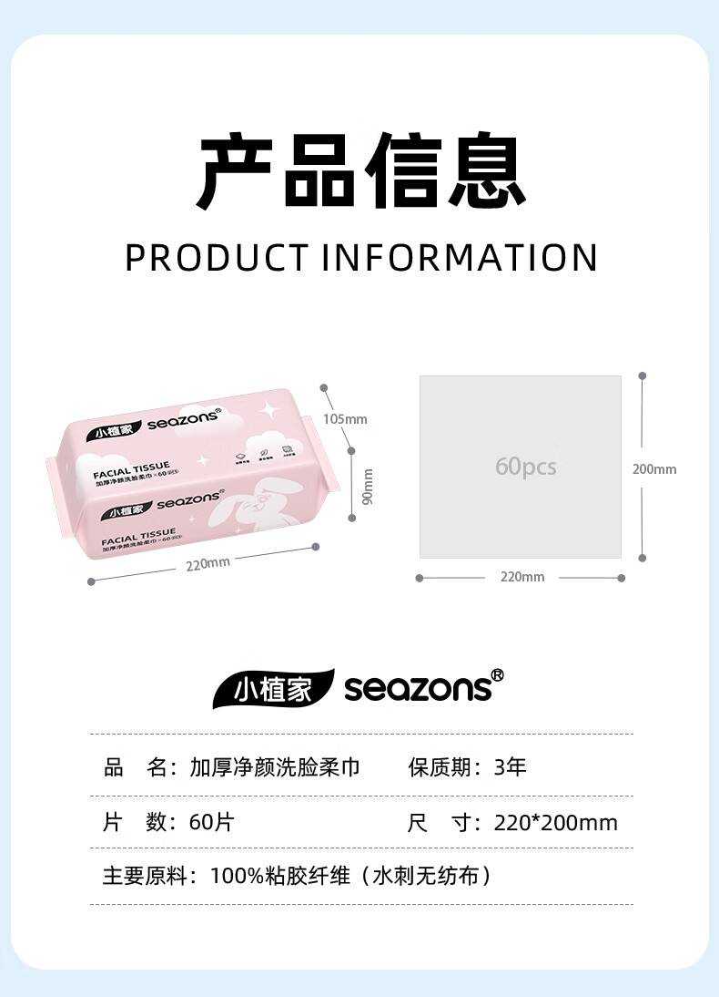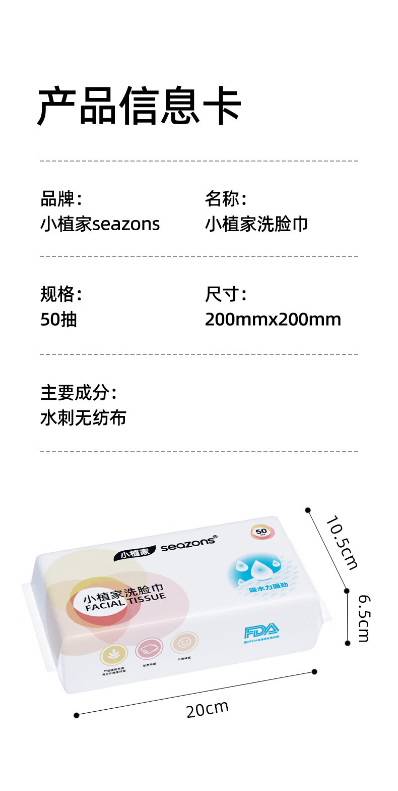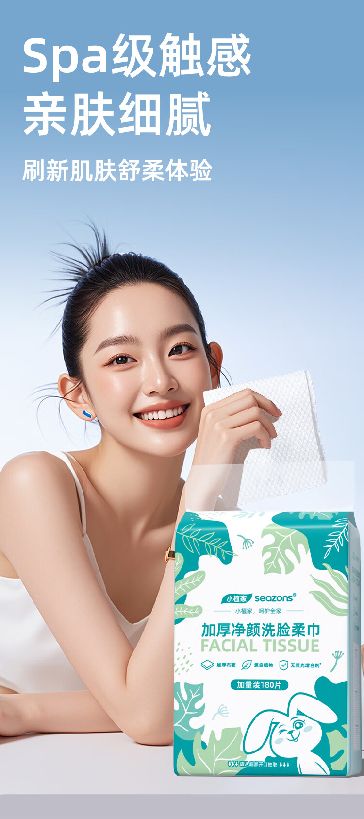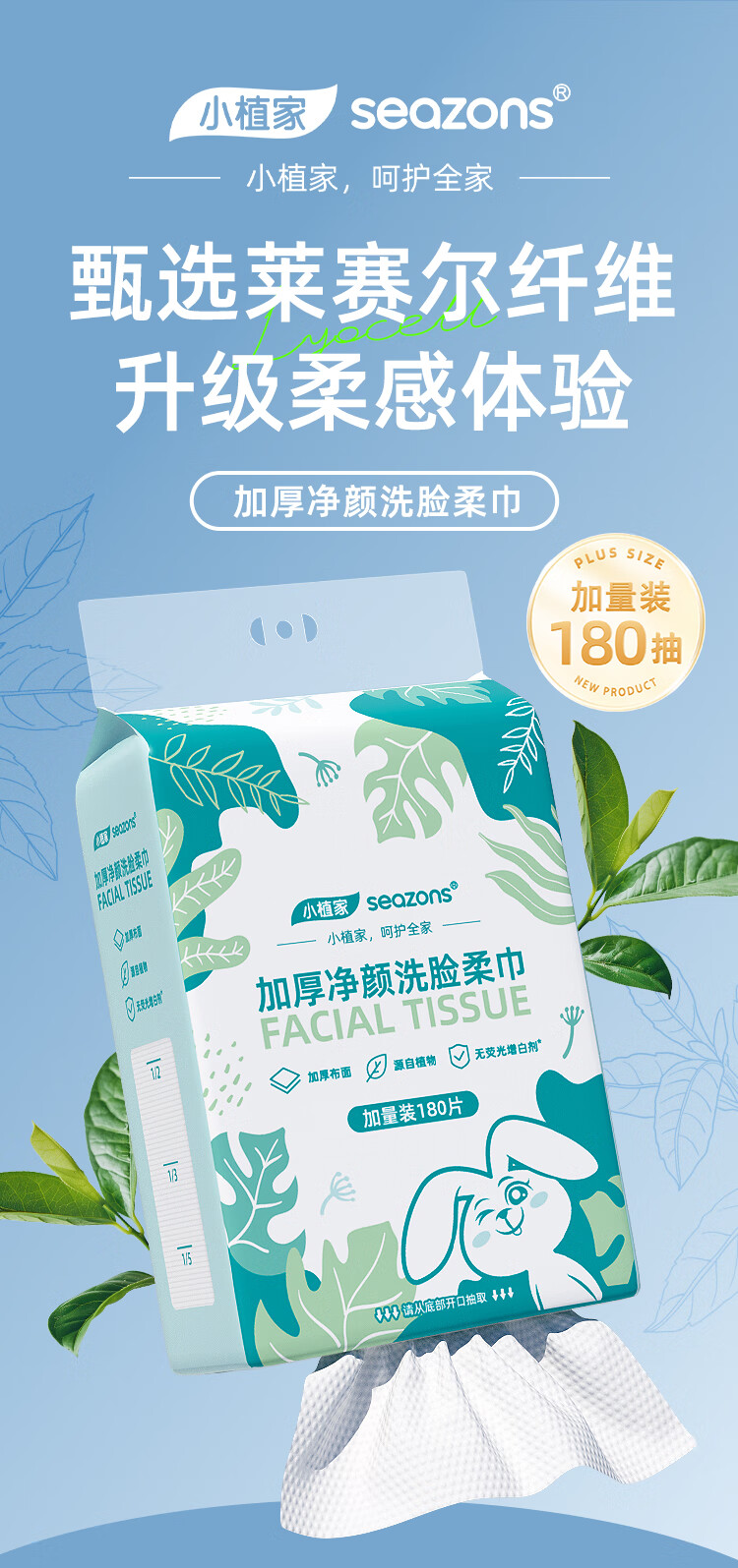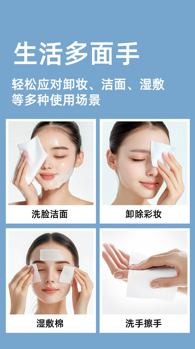 小植家一次性洗脸巾加大加厚棉柔巾擦脸洁面巾 洗脸巾50抽*3包 如图