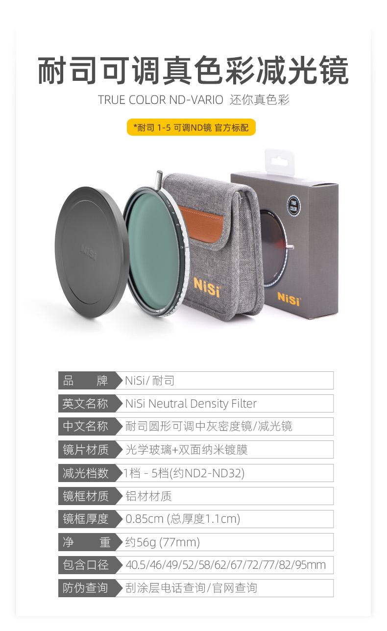 耐司(NiSi)vnd 可调减光镜 真彩 True Color V-ND1-5档可变nd减光镜真色彩 色彩保真可调ND镜 单反微单相机视 6合一飓风电影套装(ND1-5+ND16+黑柔) 82mm