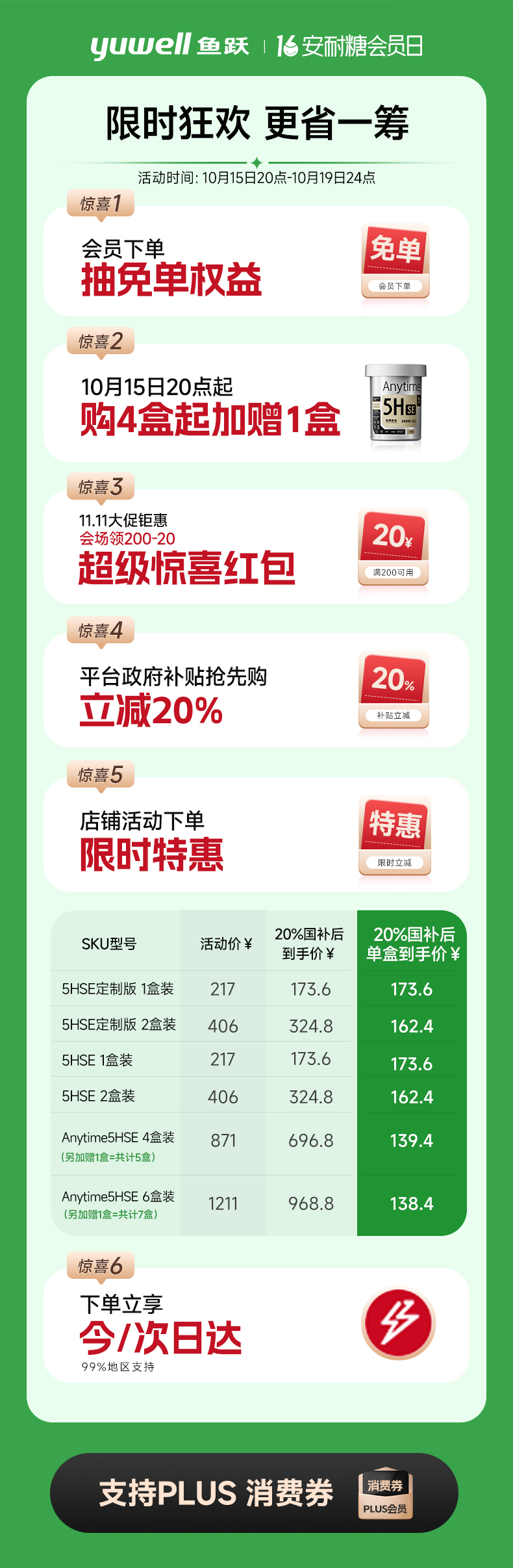 鱼跃(Yuwell)安耐糖5代动态血糖仪Anytime5HSE免扎手指家用14天持续血糖监测仪