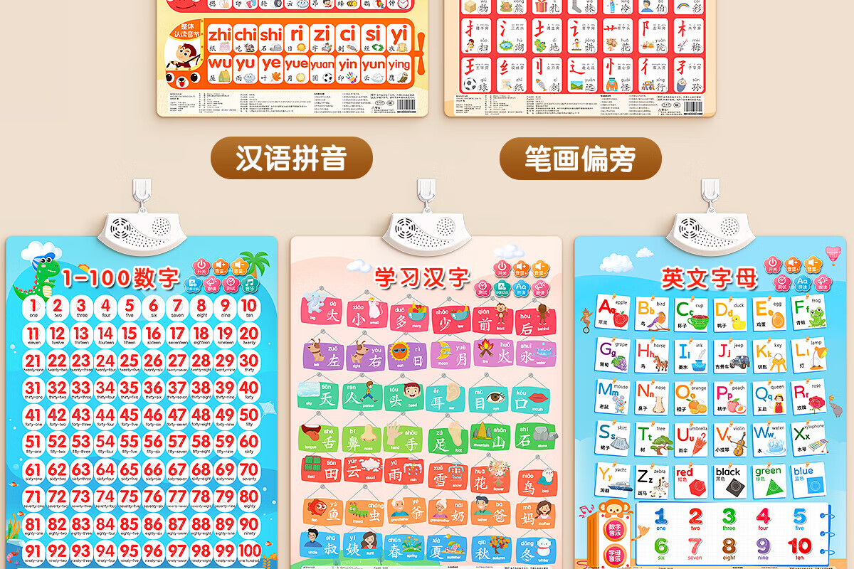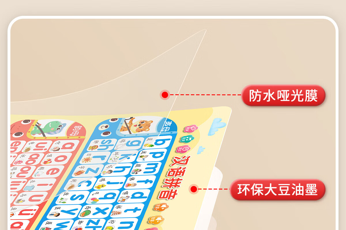秘萌 拼音挂图有声儿童拼音拼读训练一年级声母韵母汉语识字点读玩具
