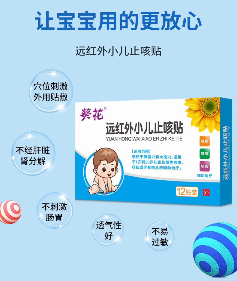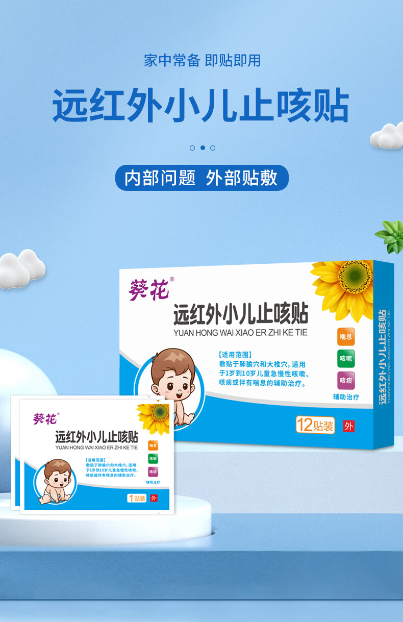葵花 小儿止咳贴儿童感冒咳嗽化咯痰小儿支气管炎远红外磁疗贴 12贴