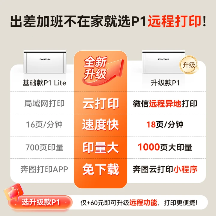 奔图(PANTUM)P1 Lite激光打印机家用办公 手机无线微信打印 学生作业错题打印机